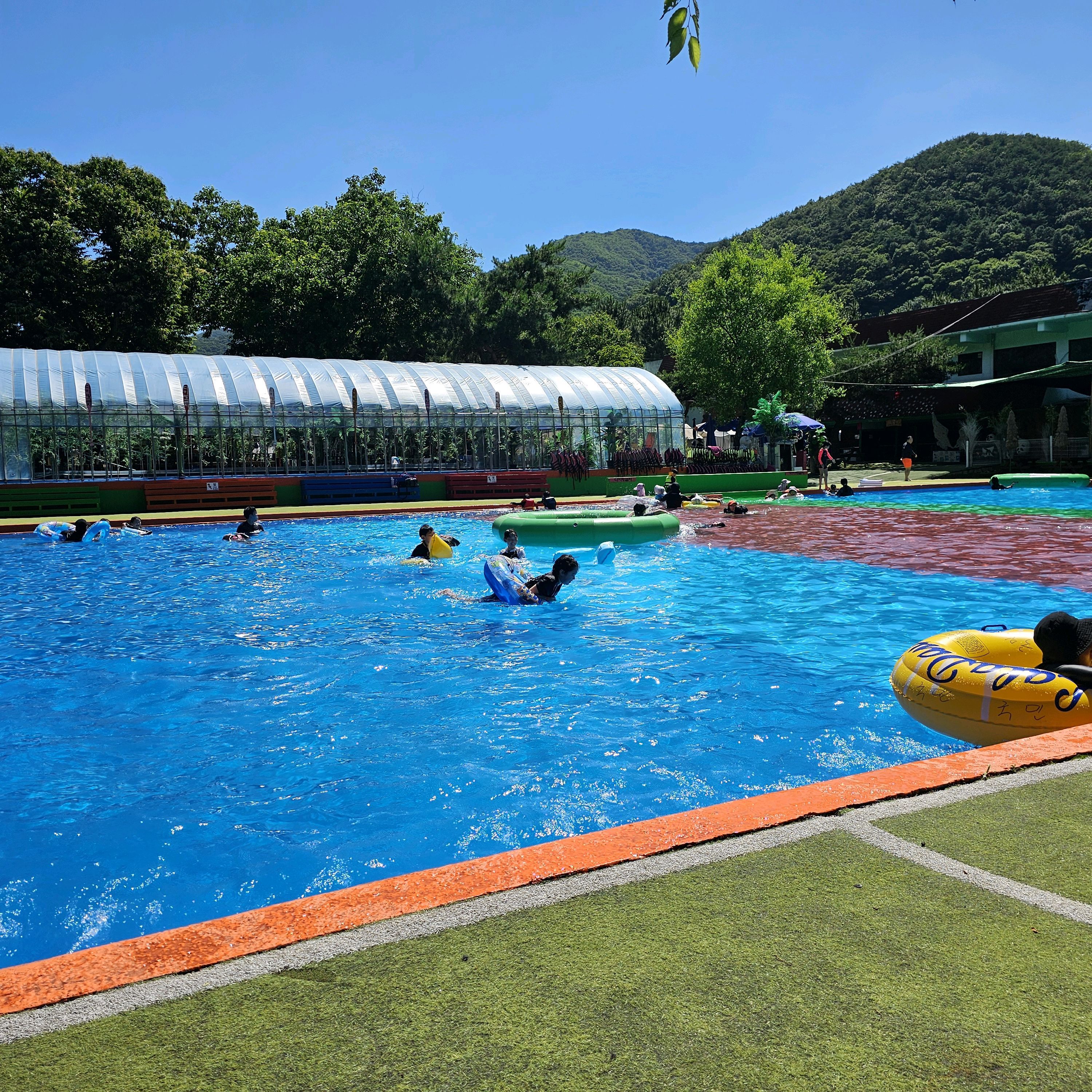 야외수영장 규모는 커서 좋고 물고기잡기, 토끼먹이,미끄럼틀 함께 이용할 수 있어 좋음