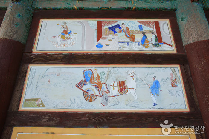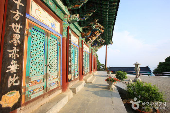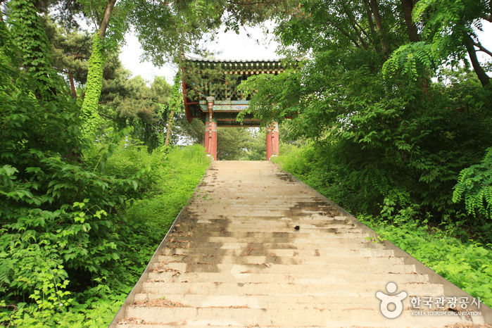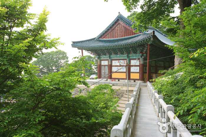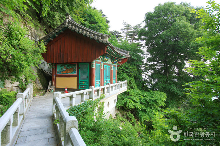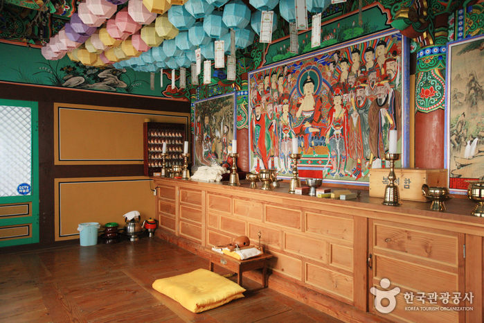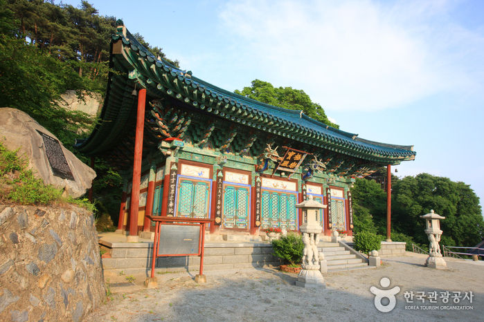 가섭사는 정면 5칸, 측면 3칸의 겹처마 팔작지붕 목조와가의 극락보전과 정면 2칸, 측면 1칸 반의 삼성각, 그리고 콘크리트로 만든 요사채 1동이 있다. 극락보전 안에는 목조 아미타여래 좌상을 주존으로 하는 삼존불이 있는데, 협시불은 관세음보살 좌상과 지장보살 좌상으로 1975년에 만들어졌다. 가섭산 정상 아래에 자리한 가섭사는 조용하고 아담한 산사가 무척 아름다우며 산사 곳곳의 풍경이 무척이나 고즈넉한 곳이다. 음성을 여행하며 가볼 만한 사찰이다. |