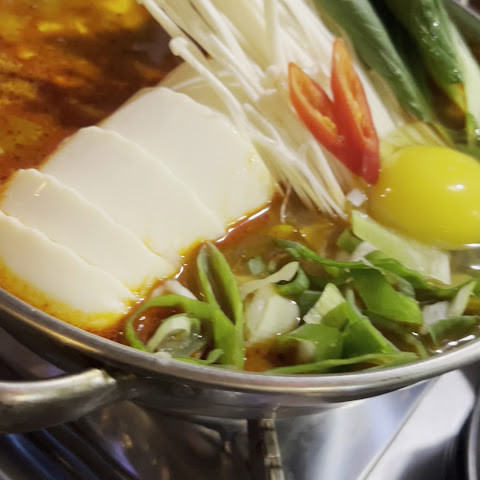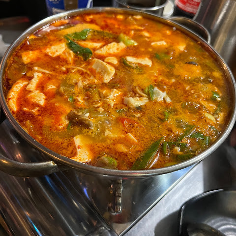 드라마 세트의 순두부찌개와 체유포쿤을 주문했습니다.