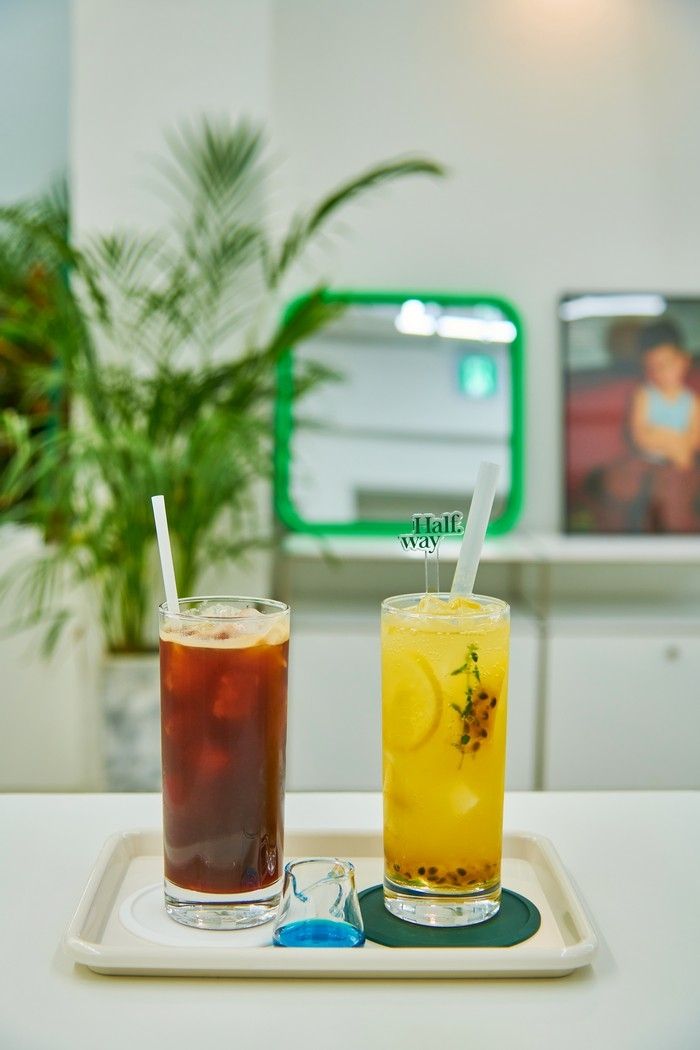 철저한 자기 관리로 건강한 몸매를 유지하고 있는 그룹 애프터스쿨 출신 배우 유이가 오픈한 보디 프로필 스튜디오 겸 카페이다. 카페 사장님으로 변신한 유이가 내려주는 커피를 맛볼 수 있는 공간으로 빠르게 입소문을 타고 있다. 하프웨이의 대표 메뉴는 트로피칼과 패션프루트가 들어간 ‘하프웨이 그린 에이드’인데 상큼함과 달콤한 맛이 조화를 이뤄 인기를 끌고 있다.