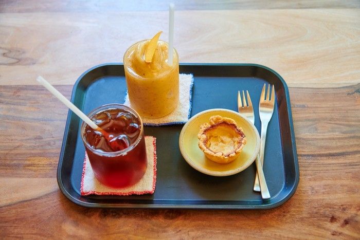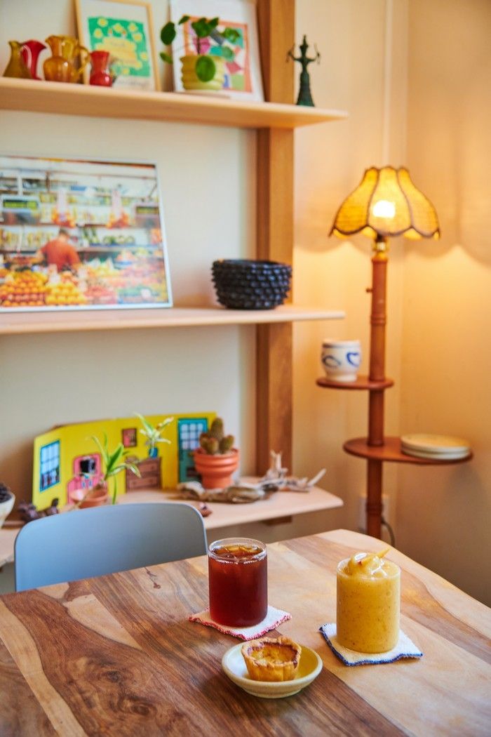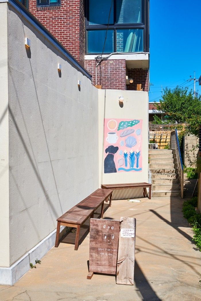 2층 주택을 개조하여 옛날 집의 따스함이 물씬 풍기는 카페다. 들어서자마자 보이는 강아지 벽화는 아이브 안유진이 사진을 찍었던 그 포토존이다. 안으로 들어서면 멤버들이 앉았던 기다란 테이블이 보이고, 모든 공간은 무심한 듯 세심한 손길이 닿아있다. 편안하지만 그야말로 딱 '요즘 감성'이 느껴진다. 샐러드, 샌드위치, 파스타 디저트, 음료 등 메뉴도 다양하다. 그중 가장 인기 메뉴는 단연 감자 타르트이다.