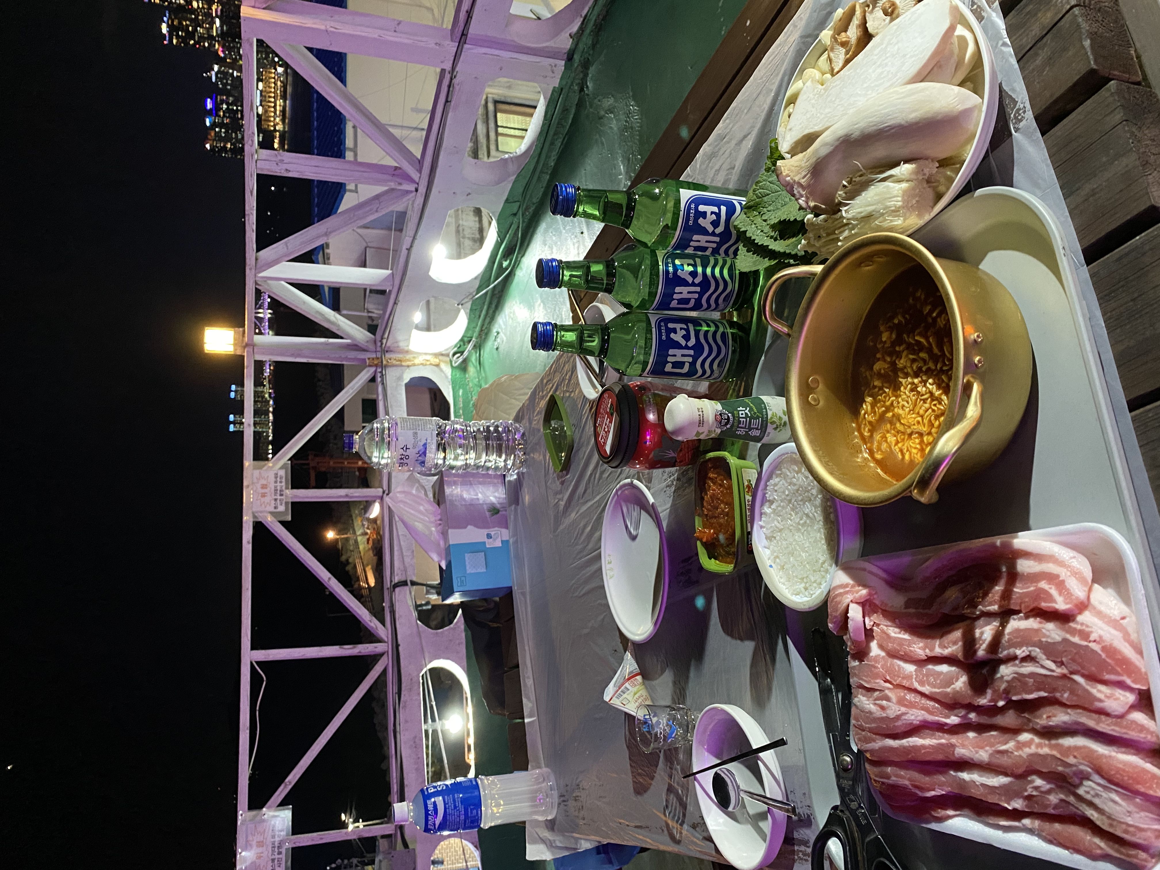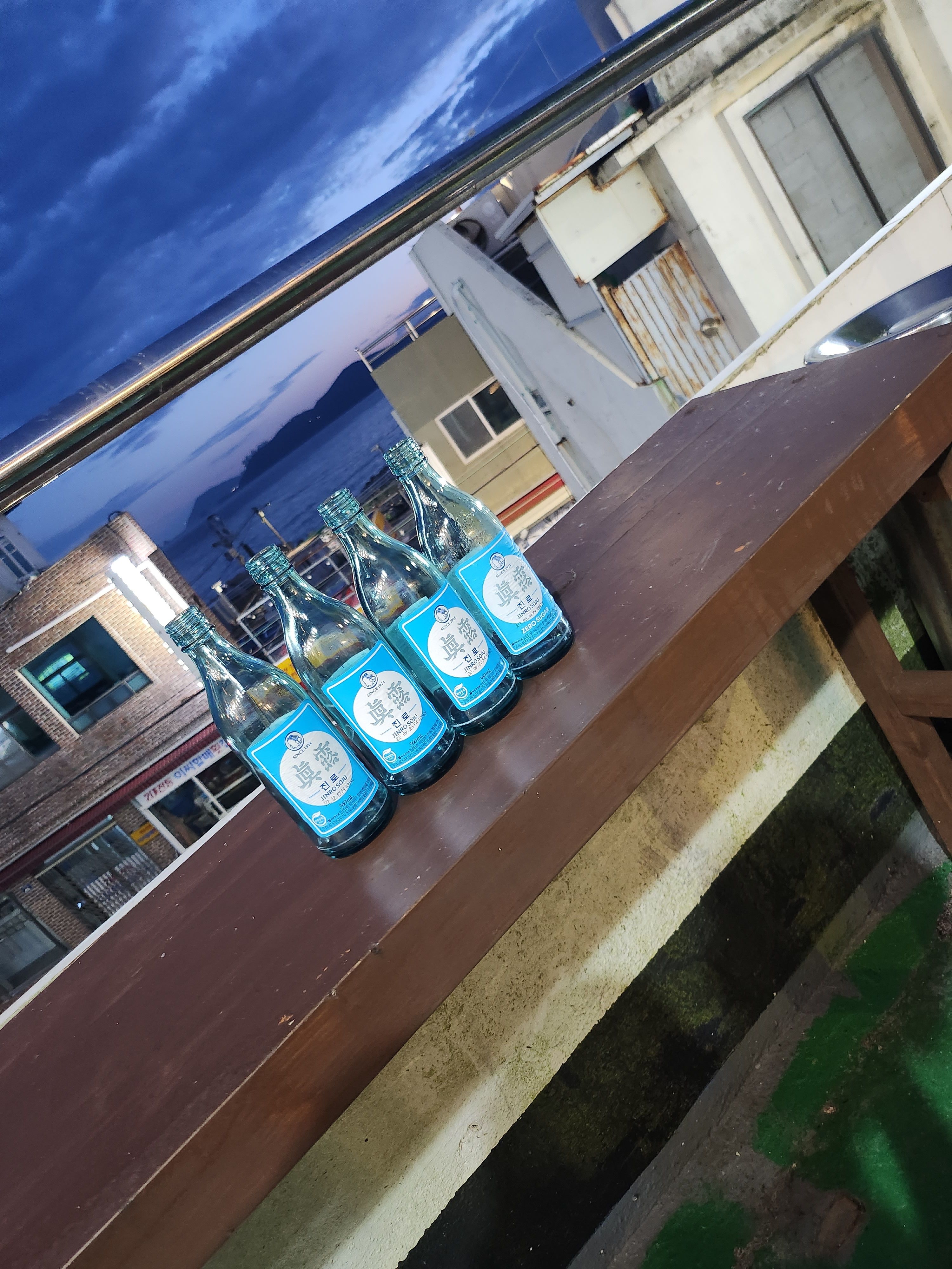 물고기미포펜션에서는 소주,병맥주,생맥주를 판매하고 있어 굉장히 편했습니다~가격은 저렴~ 소주2천원 병맥2천500원 생맥은 CC별로 다르나 저희는 1600짜리 3개먹었고 개당 9천원으로 2만7천원주고 야경을 안주삼아 시원하게 먹었습니다.