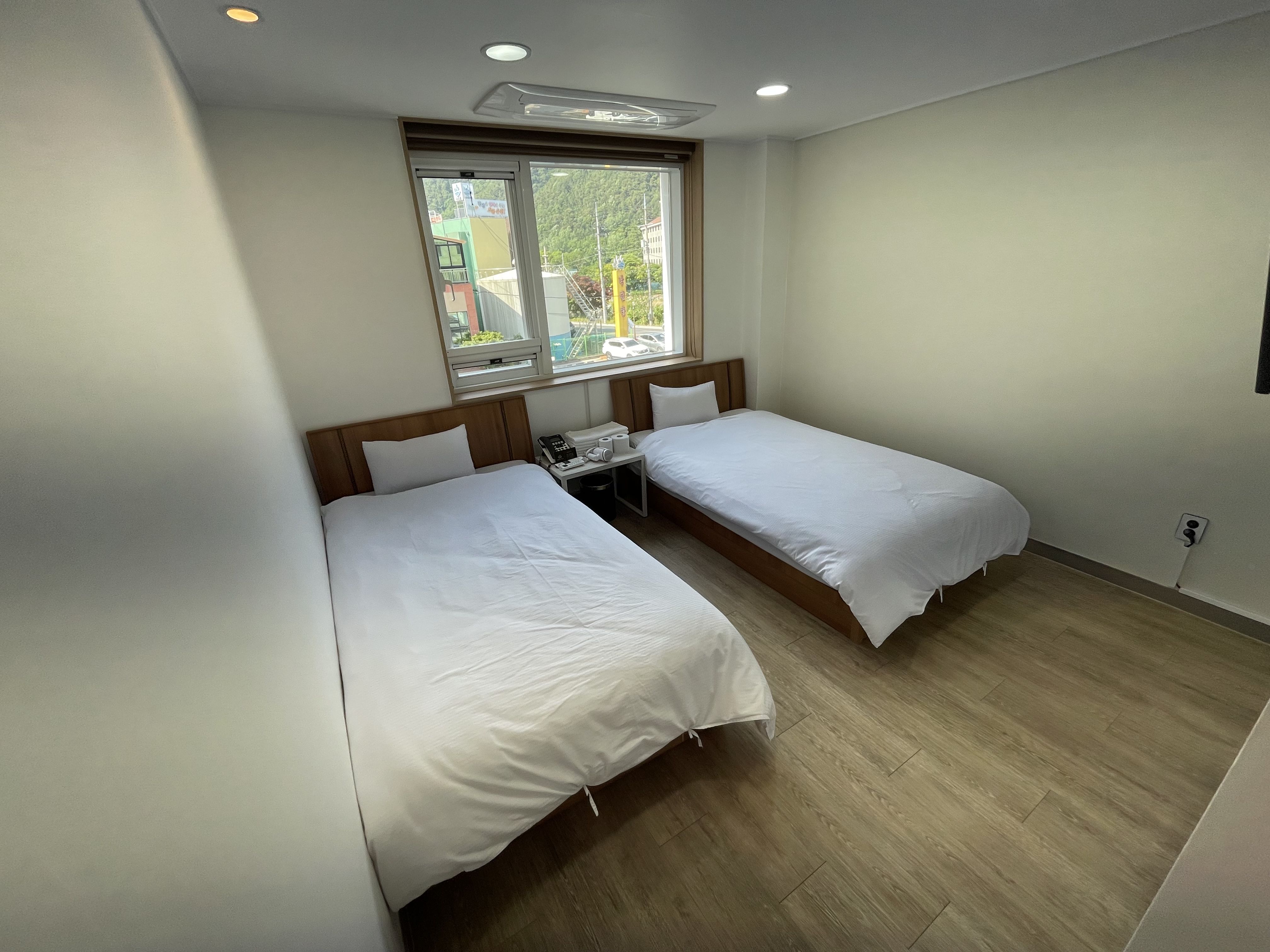 비지니스호텔 처럼 작은 사이즈이나, 깔끔하고 좋았어요, 인근 하천에 족욕도 가능하고, 3층에 휴게실도 좋았어요, 1층 음식점 황태해장국도 맛이 있었어요