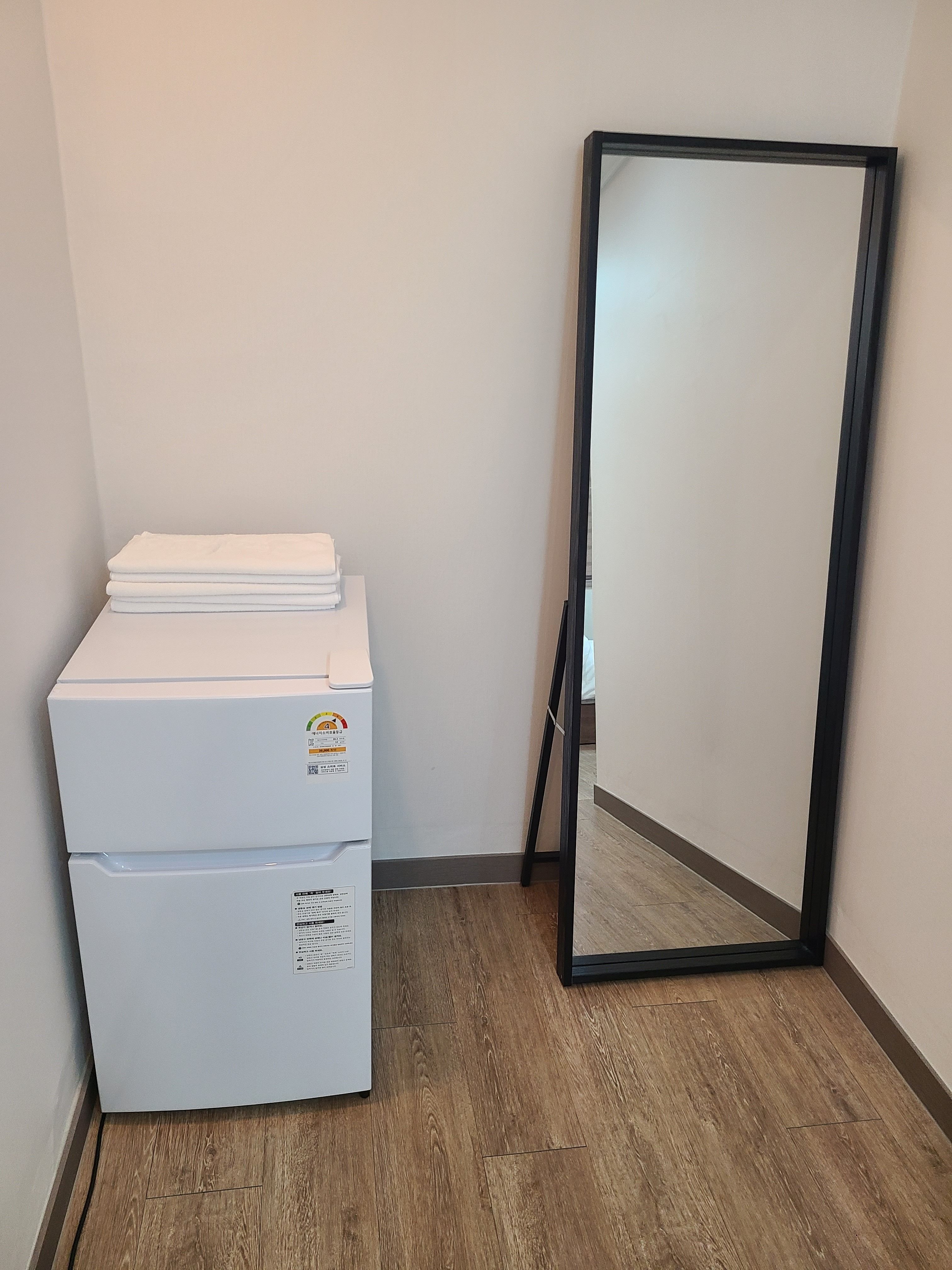 다만 거울 있는데는 작은 화장대도 콘센트도 없어요. 가구 배치 좀 바꿔줬으면 합니다.