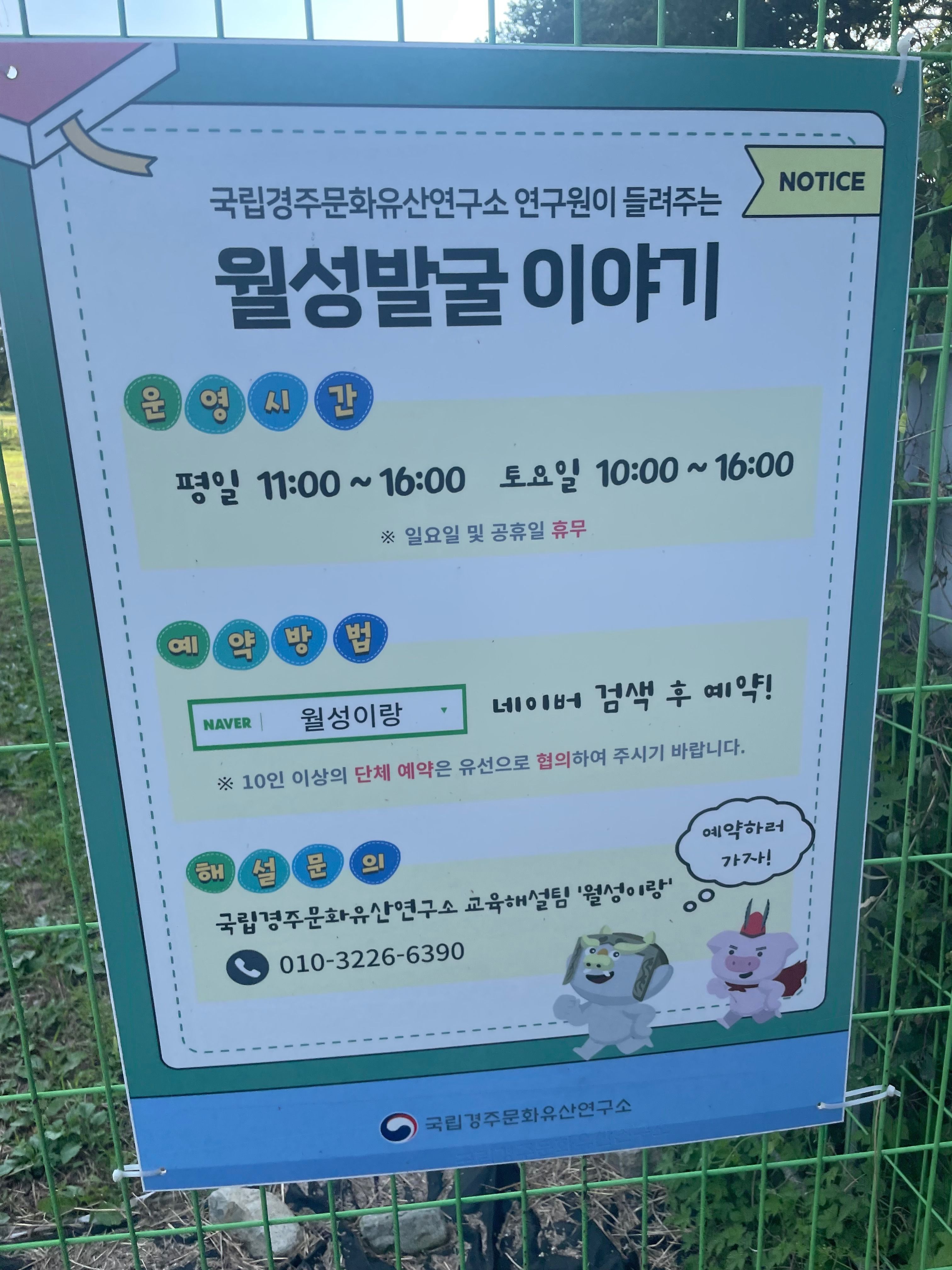 해설만 듣는 줄 알았는데 발굴체험현장에 직접 가서 눈으로 보고 듣는다고 하여 어른 아이 할 거 없이 열광의 도가니가 순간 되었는 월성이랑! 아는만큼 보인다는 말처럼 직접 가보니 보이고 이해되고 신기했네요. 아이들이 정말 좋아했고 그야말로 살아있는 현장체험이었습니다. 초 고학년들은 꼭 해볼만 합니다. 추천해요!