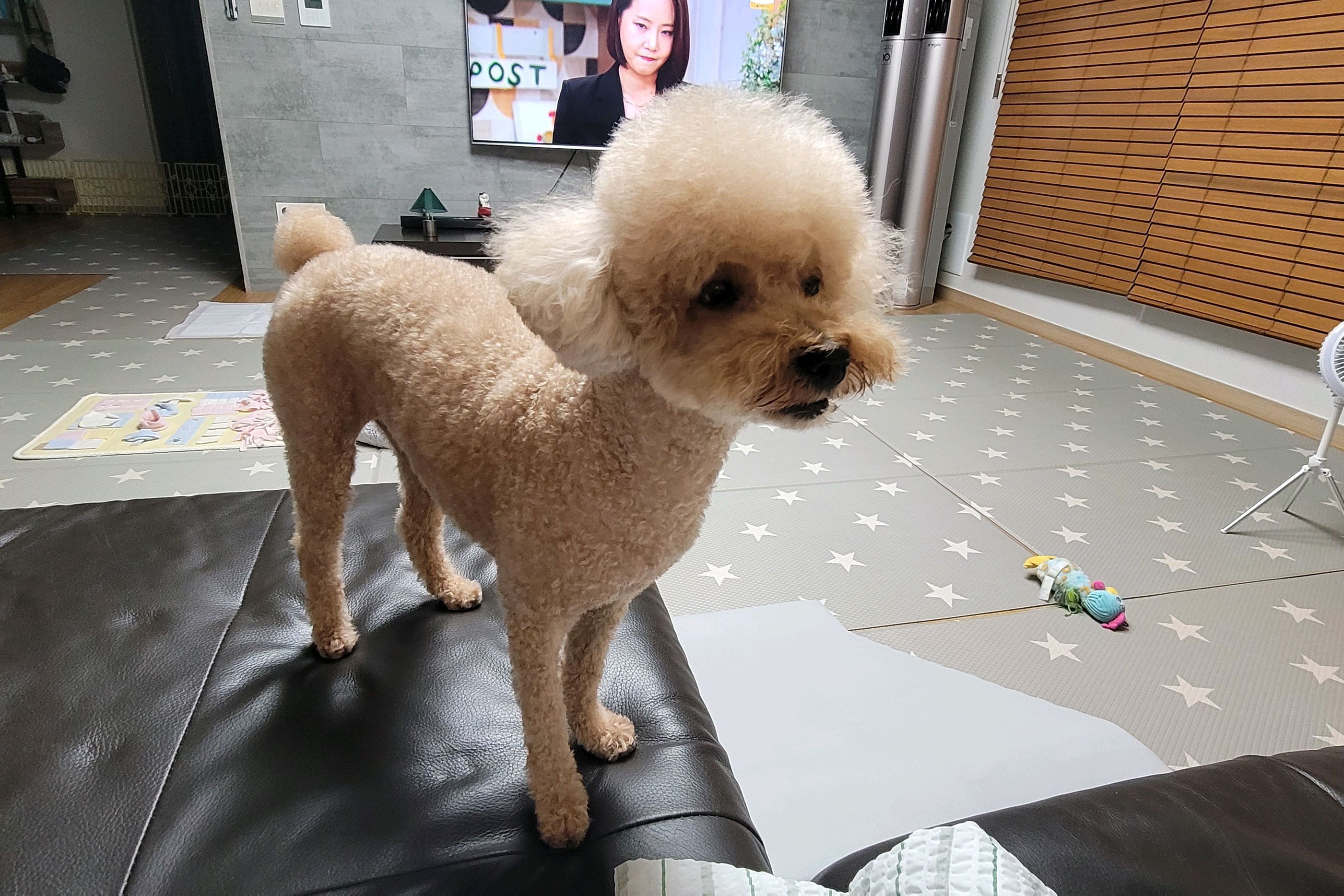 엄마빠가 미용 못하는 시기에 눈이라도 보여야 한다며 셀프미용으로 삐뚤빼뚤 난리도 아니었는데
