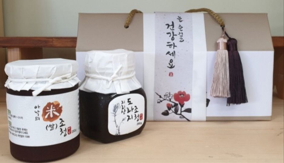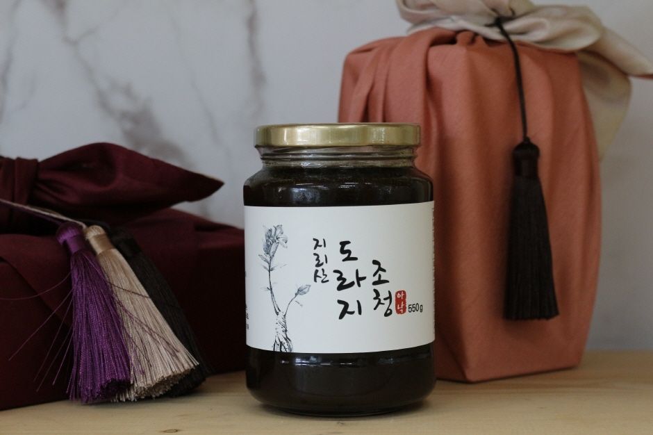 지리산에서 즐길 수 있는 도라지 조청이다. 빵이나 떡에 함께 곁들이기 좋다. 또한, 맛도 좋고 건강에도 좋다.