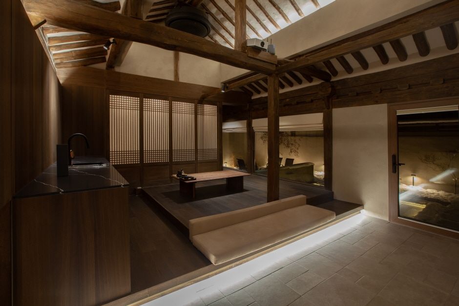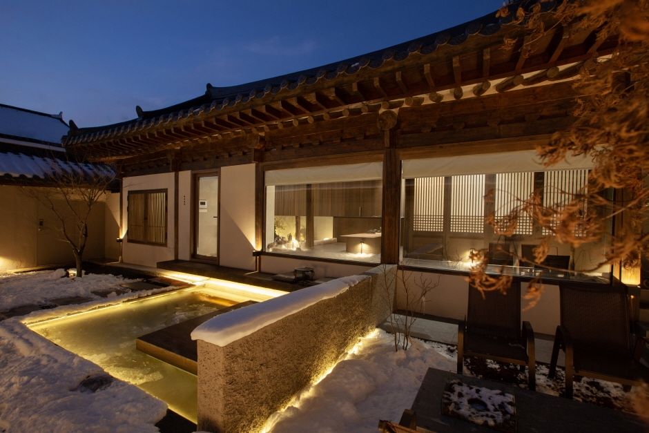 전북 남원 하정동 골목에는 네 가지 색(四色)을 가진 사색(思索)의 공간, 하정사색이 있다. 일상에서 지쳐버린 삶을 치유하고, 안온한 휴식을 통해 여유를 잃고 살아왔던 사람의 여유로움을 위안하는 공간이다. 마당(정원)과 낙수가 있는 수공간이 있어 온전한 쉼이 가능하며, 화로 공간에서는 불멍이 가능하며 온화한 담소를 나눌 수 있다. 독채 프라이빗 한옥 공간으로 거실, 주방, 침실, 세정 욕실, 외부 자쿠지의 공간을 지니고 있다.
