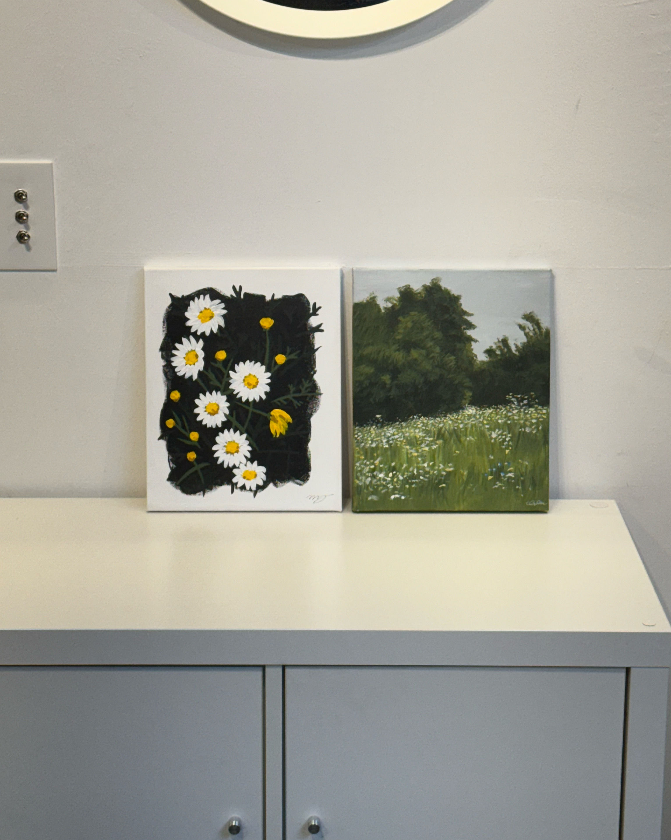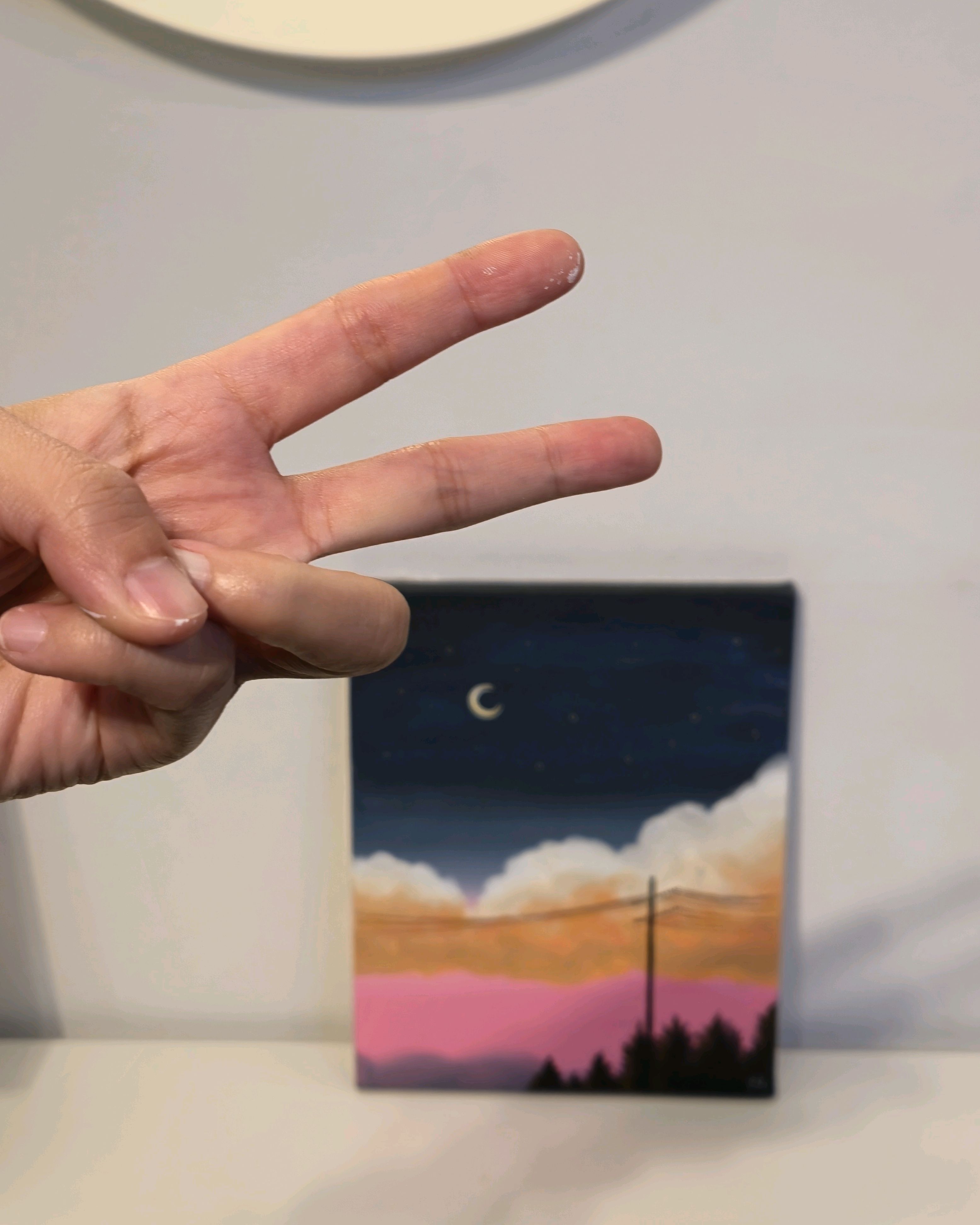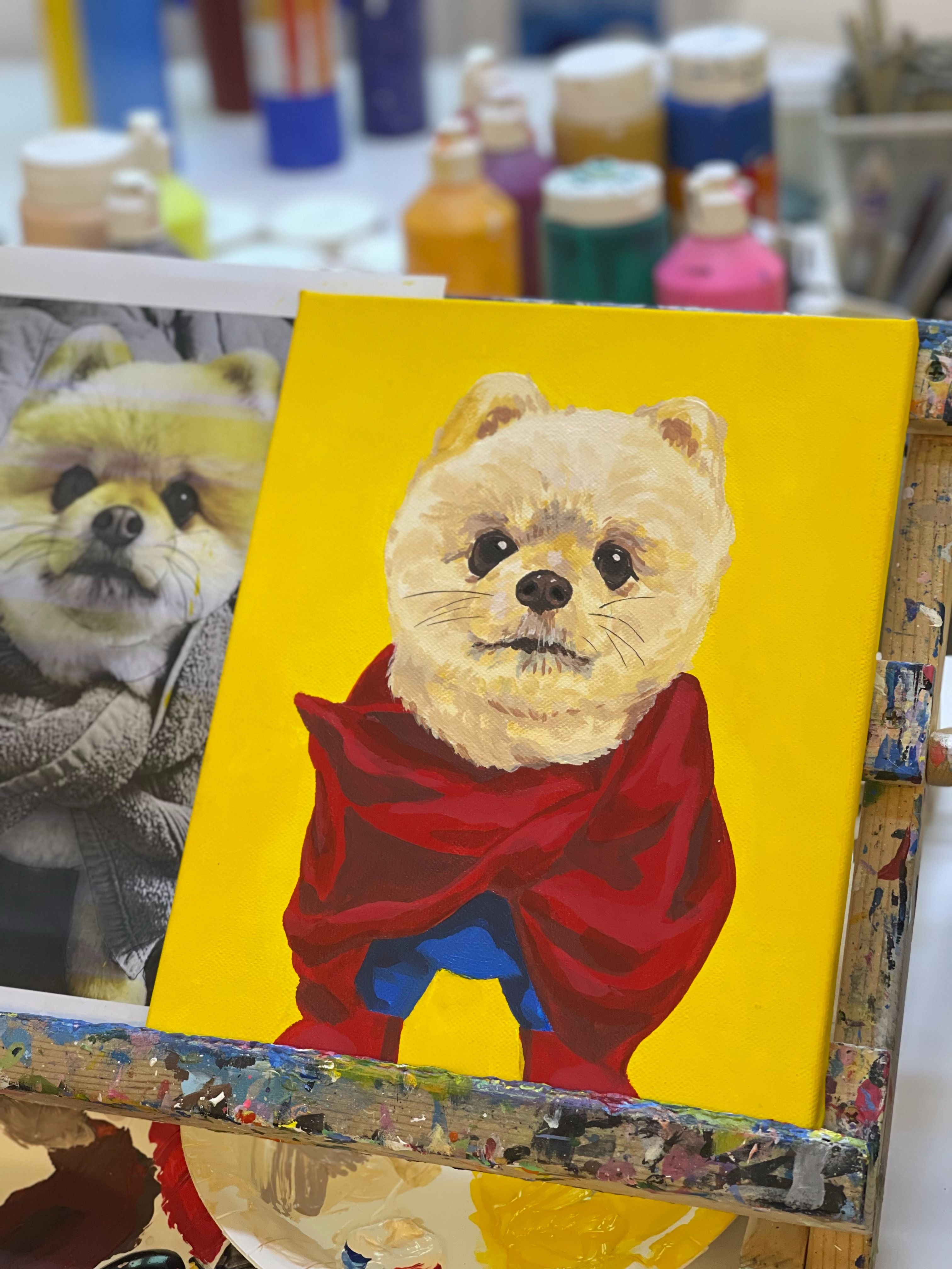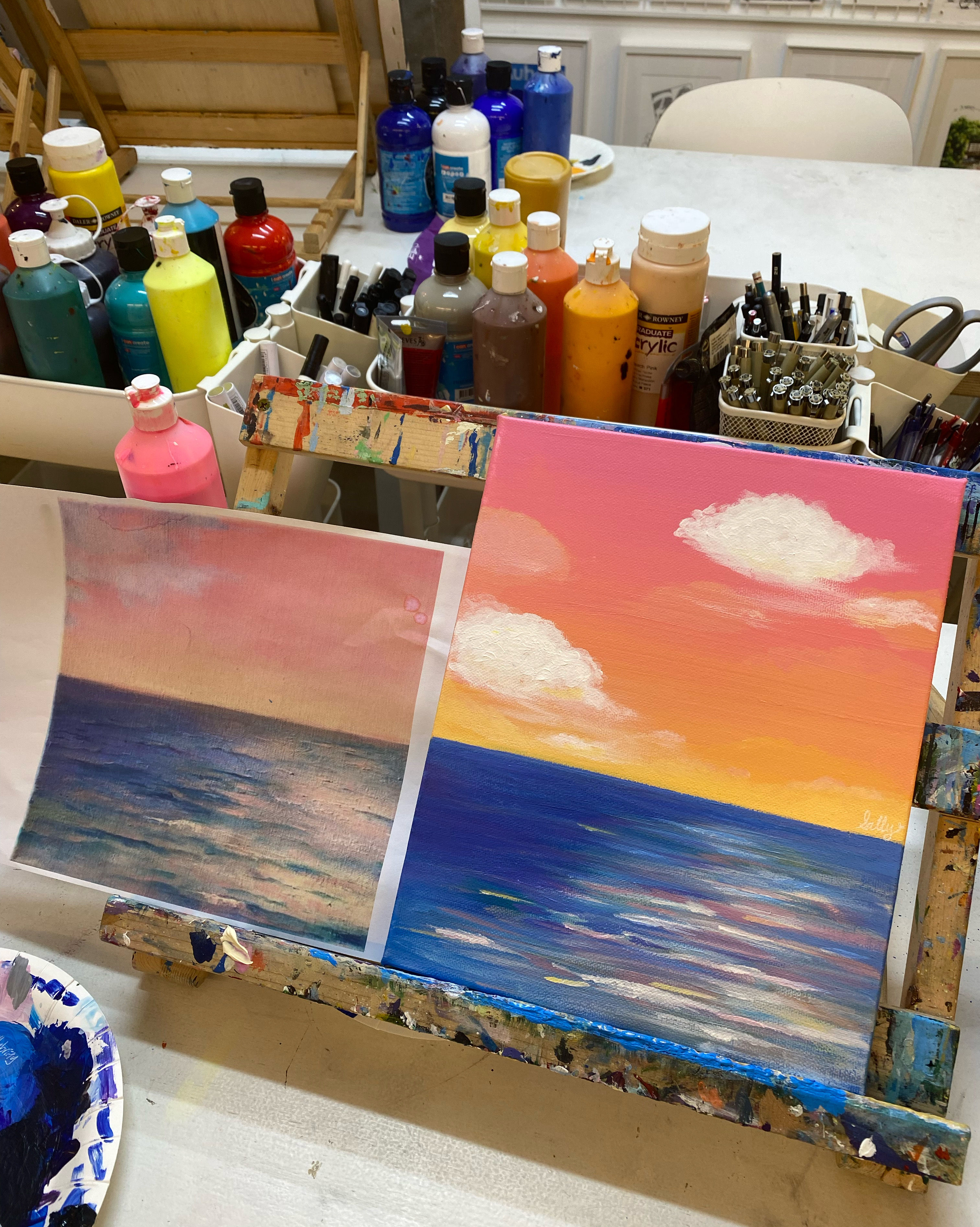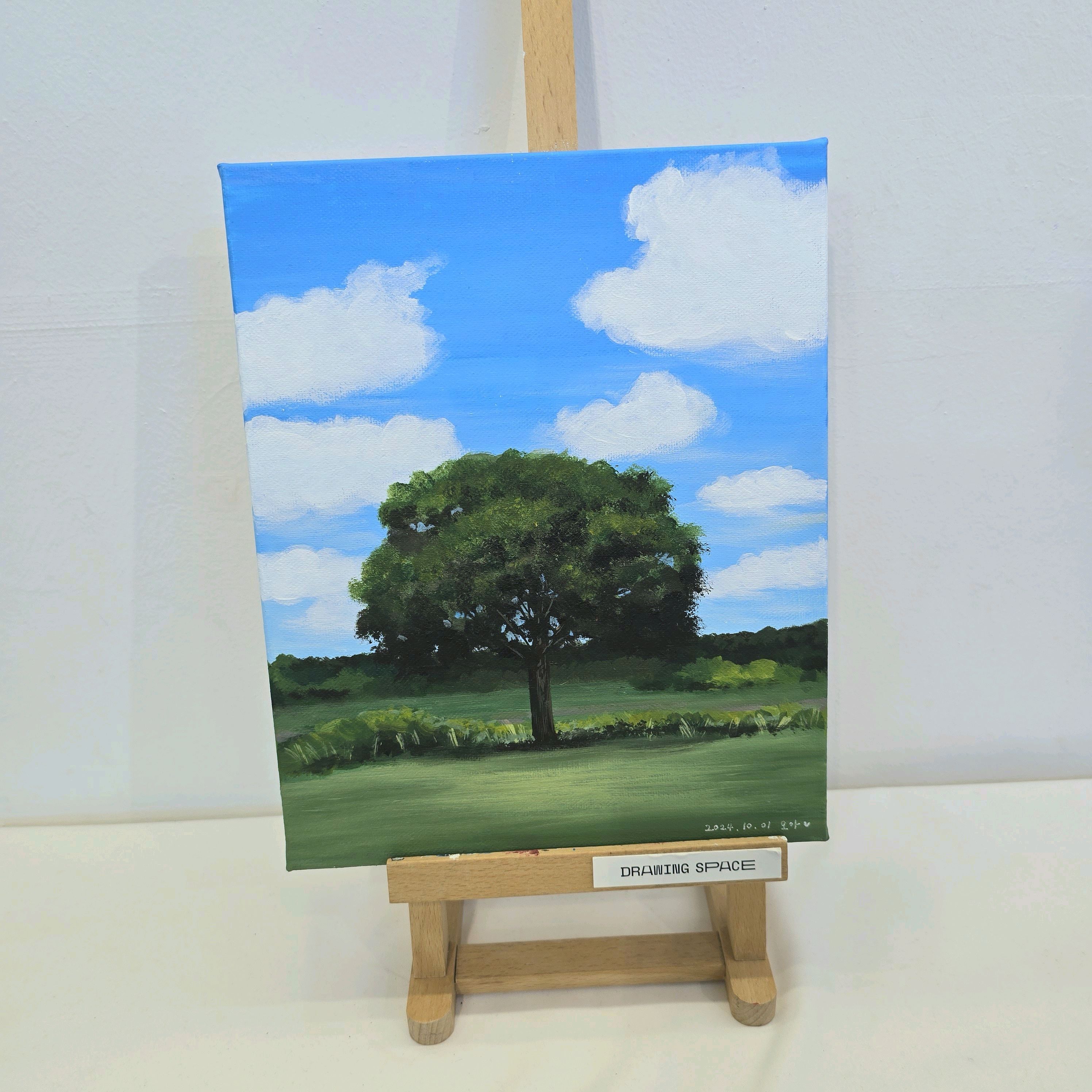 사실 이미 밑그림이 그려져있는 도화지에 채색 정도만 하는 컬러링을 생각하고 왔는데, 작은 사이즈지만 새하얗게 텅빈 캔버스를 주셔서 조금 당황했어요 ㅋㅋ 하지만 처음부터 끝까지 꼼꼼하게 봐주시면서 어떻게 칠해야할지 알려주시고 중간중간 도와주셔서 너무 멋진 그림을 완성할 수 있었어요 🥰 인생 처음으로 완성해본 그림,,, 제가 시작하고 선생님이 마무리해주신... 그런 그림이지만 서명은 제가 했으니 제가 그린 그림이에요! ㅋㅋㅋㅋㅋ