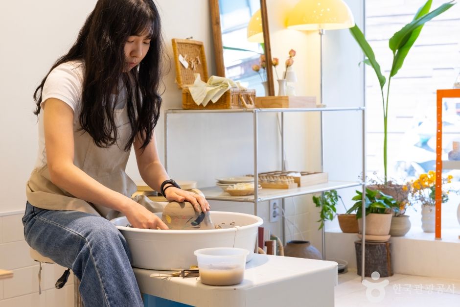 랩포터리 교육 과정은 원데이클래스와 정규반으로 나뉜다. 원데이클래스는 물레를 사용해 도자기를 빚는 ‘물레반’과 코일링 기법을 사용하는 ‘손성형반’으로 나뉘는데 최대 6명, 단체일 경우 15명까지 신청할 수 있다. 소요 시간은 약 1시간 30분이다. 초보자도 쉽게 따라 할 수 있도록 1:1로 지도하기 때문에 초등학생이나 어르신, 외국인이 수강하기에도 알맞다.