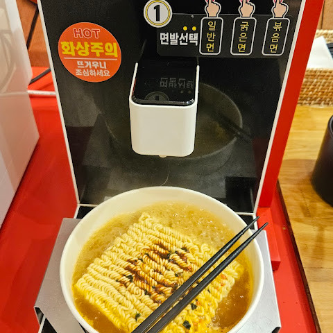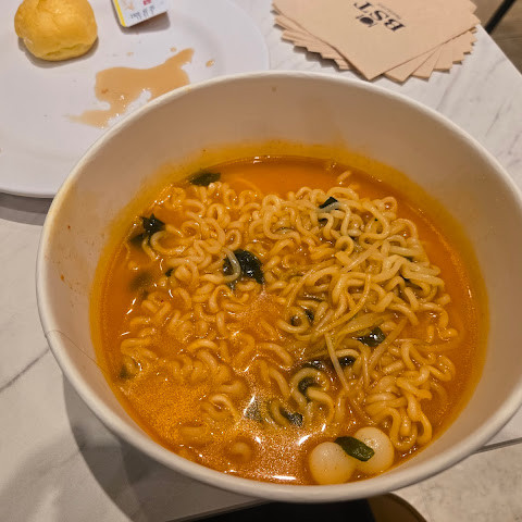 조식: 뷔페는 좋았습니다. 카페테리아는 크기가 적당했습니다. 라멘 부스가 있는 것도 좋은 아이디어입니다.