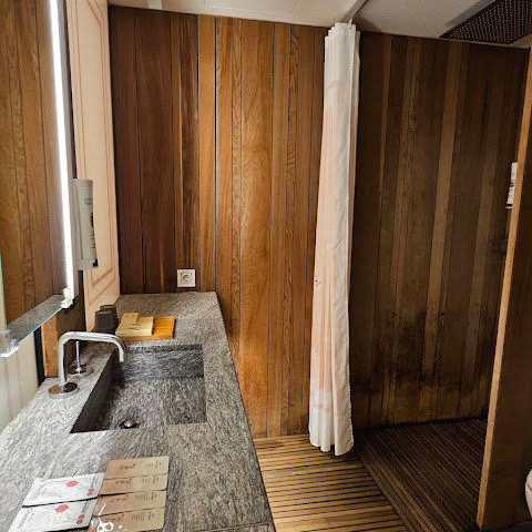 샤워실: 전반적으로 괜찮습니다. 샤워실 배수가 매우 느립니다. 샤워실 벽 유리 아래쪽에 노란 얼룩이 보입니다. 청소가 더 필요합니다.