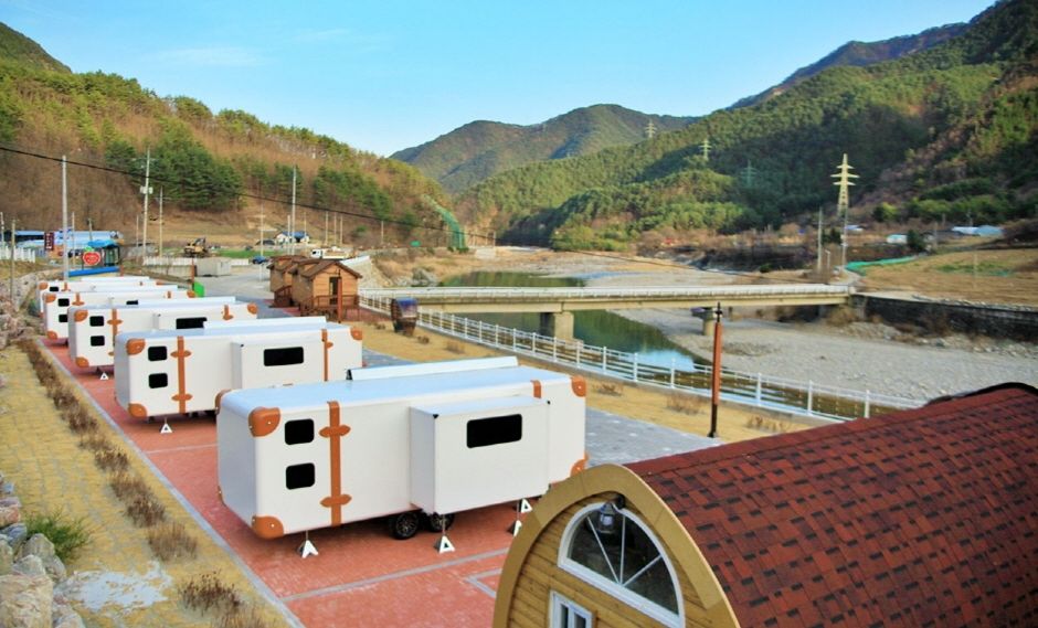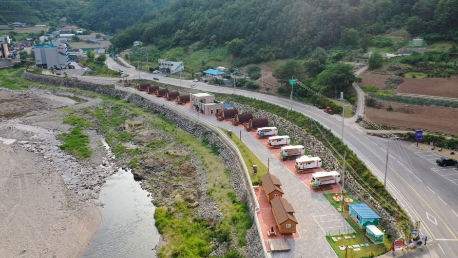 가곡국민여가캠핑장은 가곡 유황온천&스파 주변에 조성되어 있다. 캠핑 시설 15동(카라반 5동, 돔 하우스 8동, 타이니 하우스 2동)을 이용할 수 있으며 매월 셋째 주 화요일에 익월 한 달분의 온라인 예약이 가능하다. 타이니 하우스는 최대 10명까지 이용이 가능하여 가족 모임을 하기에도 좋다. 캠핑장 앞으로 맑고 깨끗한 가곡천이 흐르고 있어 자연 속에서 심신이 힐링 되는 시간을 보낼 수 있다.