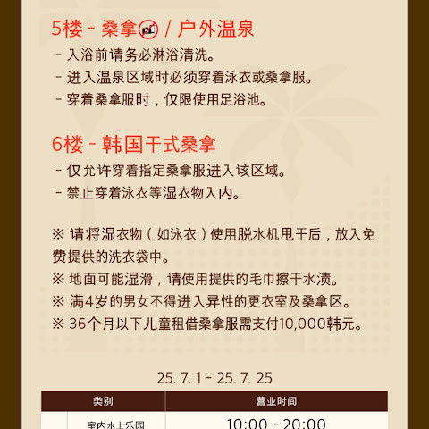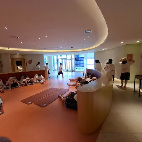 저는 단체 여행에 이용했습니다(서울의 비관광 사우나에 가서 스크럽을 받았는데, 전체 과정 동안 영어가 제공되지 않았고 당시에는 정말 좋았습니다). 이번에는 추천하지 않고 별 3개만 드리겠습니다. 이유는 다음과 같습니다. 1. 관광객을 위한 언어 서비스가 없습니다. 외국인 관광객을 위한 대형 사우나이지만 기본적인 영어 설명이 부족하고 직원들도 영어를 구사하지 못합니다. 매표소에는 영어와 중국어가 있지만, 내부의 많은 곳은 한국어로만 되어 있습니다. 2. 과정 이용을 위한 단계별 지침: (1) 여행 전 준비는 매우 중요합니다. 젖지 않는 옷을 보관/갈아입을 수 있는 가방이나 작은 바구니: 현장에서 수건/갈아입을 수 있는 작은 바구니가 제공되지 않고, 샤워실 선반은 모두 젖어 있습니다. 사물함에서 수십 미터 떨어져 있어서 수건을 간신히 잡기 위해 "세탁 벨트"(현장에서 제공되는 매우 얇음)를 사용해야 했습니다. 미끄럼 방지 실내화: 별도의 샤워 공간이 없으며, 보관 공간(개인 의류 보관)과 샤워/온수 공간 사이의 돌바닥이 수십 미터 떨어져 있어 젖어 있습니다. 미끄럼 방지 기능이 없으므로 넘어져 다치지 않도록 주의하십시오. 속옷 갈아입기: 6층 오븐/스팀 공간에 입장하려면 스팀 목욕복(흰색 상의)을 착용해야 하며, 땀을 많이 흘리므로 속옷이 젖을 수 있으므로 속옷을 갈아입어야 합니다. 작은 물컵을 지참하세요: 6층 레스토랑에 무료 정수기와 작은 종이컵이 있습니다. (2) 위치는 두 개의 건물로 나뉘어 있습니다. 투어 버스를 타시면 해변을 바라보는 오른쪽 건물로 들어가게 됩니다. (3) 5층에서 티켓을 구매하여 입장하세요. 티켓에 적힌 번호는 "신발장"과 "사물함" 번호입니다. 이때는 열쇠고리가 없습니다. (4) 입장 시 신발장 구역으로 가서 신발을 넣으세요. 신발장에는 "열쇠고리, 손목밴드형"이 있습니다. 잘 보관하세요. 분실 시 비용을 지불해야 합니다. (5) 앞으로 나아가면 남녀 공간이 있습니다. 여성 입구 구역에 들어가면 사물함이 일렬로 있습니다. 먼저 작은 카운터(1인용)로 가서 영수증을 제시하면 수건(유료: 수건 추가 시 개당 1,000원!)과 스팀룸 슈트(흰색 상의와 갈색 반바지)를 받습니다. 사물함은 성인 여성 허리 크기 정도이며 옷걸이가 네 개 있습니다. 여기서 옷을 벗고 샤워를 준비할 수 있습니다. 샤워를 원하지 않으시면 스팀룸 슈트(속옷 착용 필수)로 갈아입고 6층 스팀룸으로 바로 이동하실 수 있습니다. (6) 참고: 별도의 샤워 공간은 없습니다. 온수 욕조 구역에서만 샤워할 수 있습니다. 샤워 공간은 입구 근처에 있는 입식 샤워 공간(버튼식 물 배출구 있음)과 좌식 샤워 공간(샤워헤드 있음)으로 구성되어 있습니다. 기본 샴푸, 샤워젤, 컨디셔너는 무료로 제공됩니다. (7) 6층 사우나 구역으로 가는 계단을 올라가면 5층 "야외 온천 구역" 입구를 지나게 됩니다. (야외 온천 구역을 이용하려면 수영복을 입어야 합니다. 사우나 슈트만 입으면 발만 담글 수 있고 온몸을 물에 담글 수 없습니다.) 너무 번거로워서 이용하지 않았습니다. (8) 6층 사우나 구역: 남녀 탈의실, 안락의자+대나무 베개와 라운지 의자가 있는 실내 휴게실, 음료 구역(현금 없음, 손목 밴드로 결제), 사우나 오븐 구역, 야외 수영장과 두 개의 작은 오븐, 중앙에 사진 구역, 레스토랑 구역과 "바위 침대 구역", 뒤쪽에 더 많은 사람을 수용할 수 있는 사이프러스 오븐(45~50도가 가장 편안함), 돌 오븐 구역, 70도 오븐 구역, 10도 콜드박스 구역이 있습니다. 중간 구역에서 대나무 베개를 가져와 오븐 구역으로 가져와 누울 수 있습니다. 물을 마시고 싶다면 중간 "레스토랑 구역"(사진)에 정수기가 있습니다. 냉수와 온수가 모두 나오는데, 작은 종이컵이 매우 얇아서 물컵을 직접 가져갈 수 있습니다. (9) 사우나를 마친 후 5층으로 내려가 샤워를 했습니다. 5층과 6층을 자유롭게 오갈 수 있었습니다. 5층의 넓은 창고에는 직원이 거의 없었습니다. 머리를 말릴 때는 다이슨 헤어드라이어를 사용했습니다. 면봉과 로션은 무료였지만 의자는 없었고, 화장솜과 로션도 무료가 아니었습니다. 옷을 말릴 수 있는 "탈수기"가 여러 개 있었습니다.