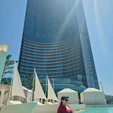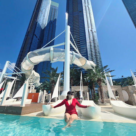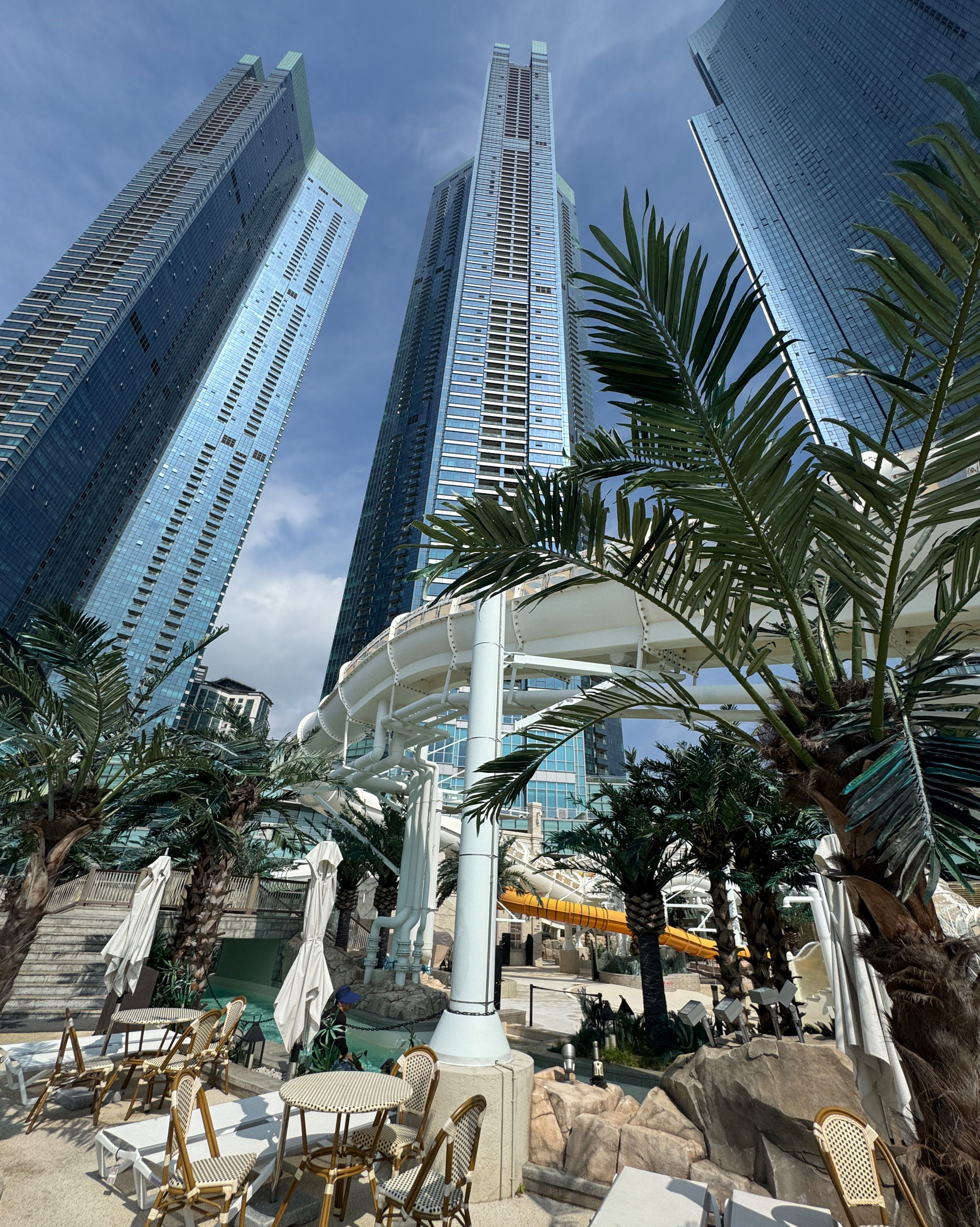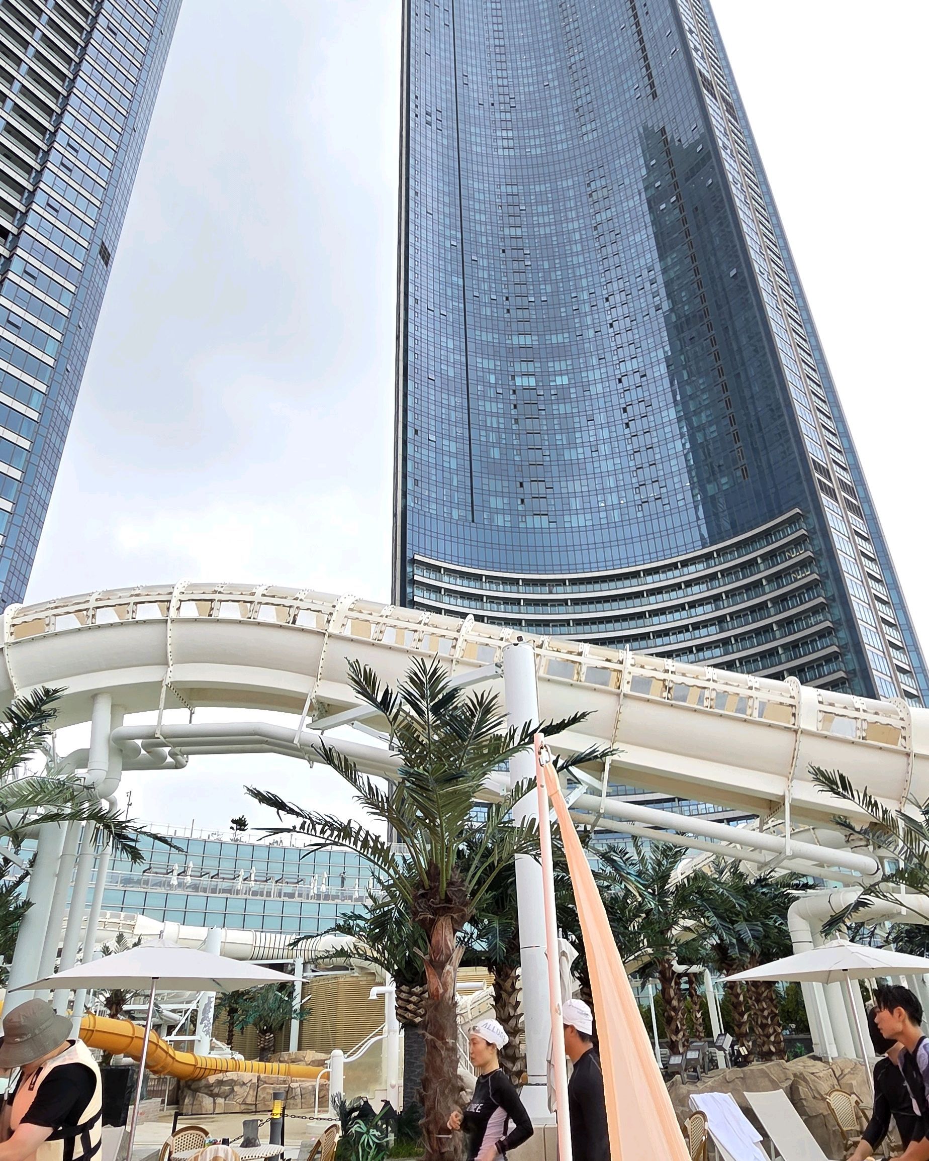 끝나는 쪽은 요금이 좀 비싸지만, 인피니티 풀에서 보이는 경치는 그만한 가치가 있습니다. 마찬가지로, 슬라이드는 아이들이 좋아할 만한데, 기다려야 합니다(저희는 평일에 갔는데 사람이 덜 붐볐습니다).