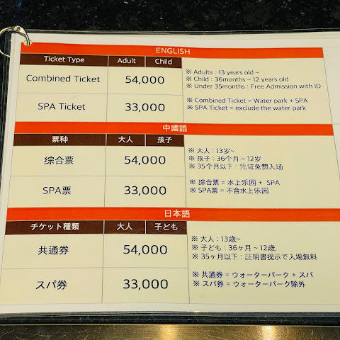 소인 : 통합권(8시간) 49,000원 / 워터파크권(6시간) 39,000원 / 스파권(5시간) 24,000원