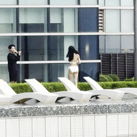 그 후 바다 풍경과 가게 앞 워터파크 사진을 찍으러 밖으로 나갔지만, 티켓은 사지 않았어요.
