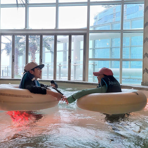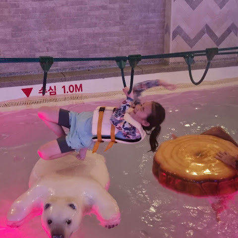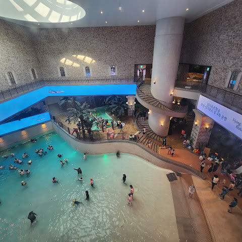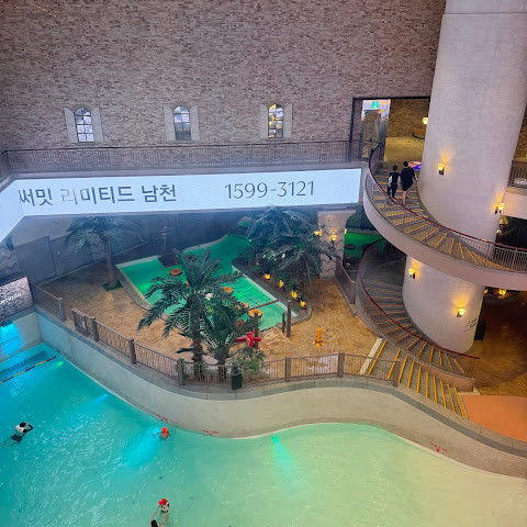 평일에 갔는데 사람이 정말 많았어요. 외국인도 많았고요. 사람이 많아서 그런지 물이 썩 깨끗하지는 않았어요. 그래도 재밌게 놀았어요. 파도풀 물은 좀 차가웠지만 다른 풀들은 따뜻했어요.