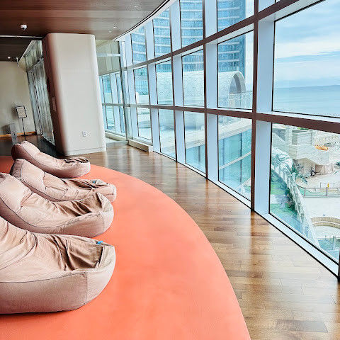 실내외 워터파크를 갖춘 훌륭한 한국식 스파/목욕탕/사우나였습니다. 저는 스파 구역에만 갔어요. 남성 전용 욕탕은 깨끗하고 바다 전망을 감상하며 몸을 담그기에 정말 좋았습니다. 야외 욕탕은 편안하게 쉬면서 수제 초콜릿 우유를 마시기에 좋았습니다. 휴게 공간은 넓었지만 솔직히 의자와 빈백이 더 많았으면 좋았을 것 같아요.