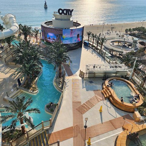 클럽 D 오아시스는 실내와 실외 워터파크를 모두 즐길 수 있는 좋은 곳입니다. 수영장에서는 한국에서 가장 긴 해변인 해운대 해수욕장의 환상적인 전망을 감상할 수 있습니다.