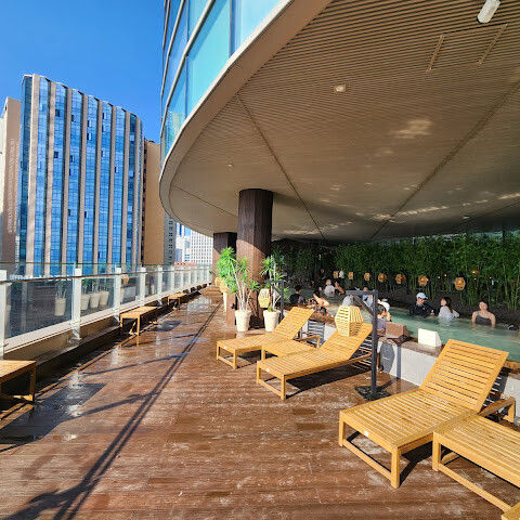 4층 워터파크는 사람이 별로 없었고, 5층 목욕탕은 그저 그랬지만, 6층 수면 공간은 음식과 음료가 풍부해서 좋았습니다. 야외 족욕 공간도 넓고, 스팀룸도 있었어요. 바깥 풍경이 사진 찍기에도 정말 좋았어요! VBP로 무료 입장하니 정말 최고예요!