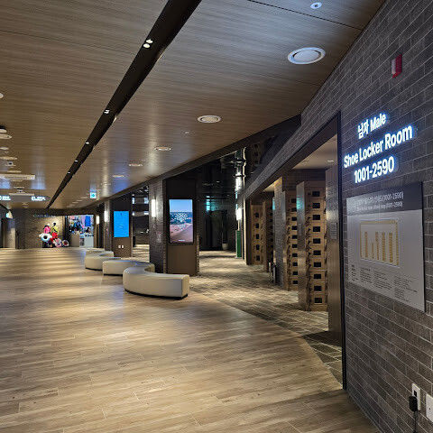 들어오고 나가는 게 미로 같았고, 구불구불한 길이 많았어요. 저는 VBP를 스팀룸을 이용하려고만 썼는데, 괜찮았어요. 나갈 때는 신발장을 열기 전에 요금을 내야 했어요. 같은 조에 있는 사람들은 모두 열쇠 하나로 모든 요금을 정산할 수 있었어요.