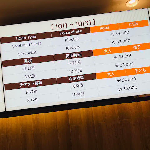 소인 : 통합권(8시간) 69,000원 / 워터파크권(6시간) 59,000원 / 스파권(5시간) 24,000원