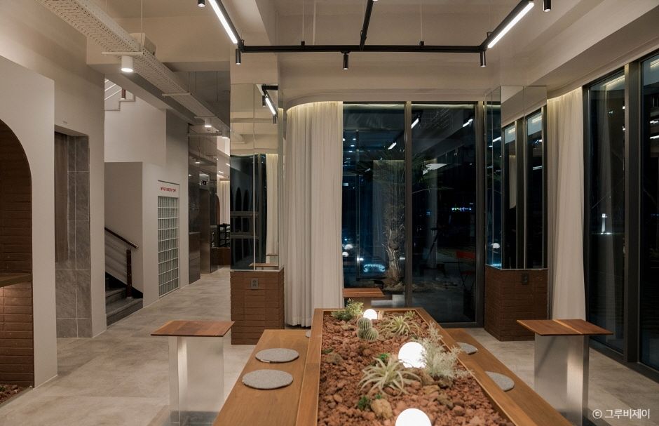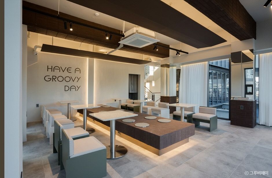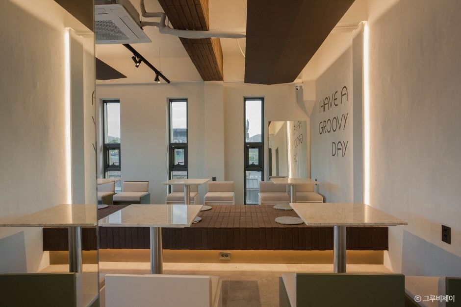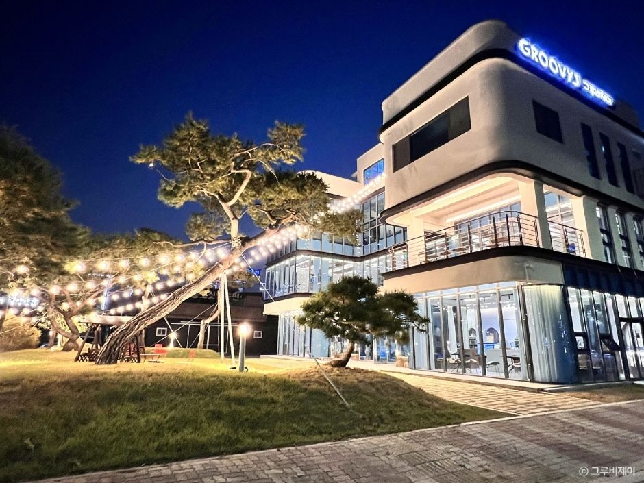 전남 영광군 법성포에 위치한 그루비제이는 매립지에 지어진 3층 규모의 카페이다. 1, 2층은 통창과 테라스로 되어 있어 개방감이 있고 3층은 대형 스크린 및 음향 시설이 구비되어 있어 회의실 등으로도 이용이 가능하다. 영광군 특산품인 새싹 보리를 이용한 라떼, 쿠키가 대표 메뉴이고 이외에 다양한 음료와 베이커리가 준비되어 있다. 넓은 잔디밭이 있어 아이들이 마음껏 뛰어놀 수 있고 애견 동반하여 즐기기에 충분하다. 쾌적하고 충분한 좌석으로 단체가 이용하기에도 좋다.