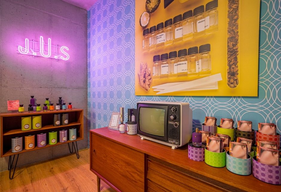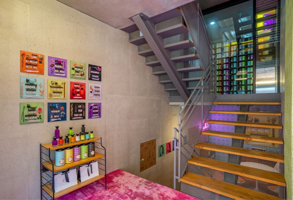 메종쥬 성수 부티끄의 향기는 기존 틀을 유연하게 해석한 트렌디하면서도 탁월한 품질을 갖추고 있다. 생동감 넘치는 디자인에 다채로운 컬러를 입힌 빈티지 팝아트 감성을 엿볼 수 있으며, 새로운 세대의 대표적인 프랑스 마스터 조향사와의 창의적인 콜라보 제품들을 만나볼 수 있다. 메종쥬는 흔히 경험할 수 없는 독특한 향수를 찾는 사람들을 위해 디자인되었다. 다양한 보틀 사이즈의 향수가 준비되어 있어 용도에 따라 구매 및 시향이 가능하다.