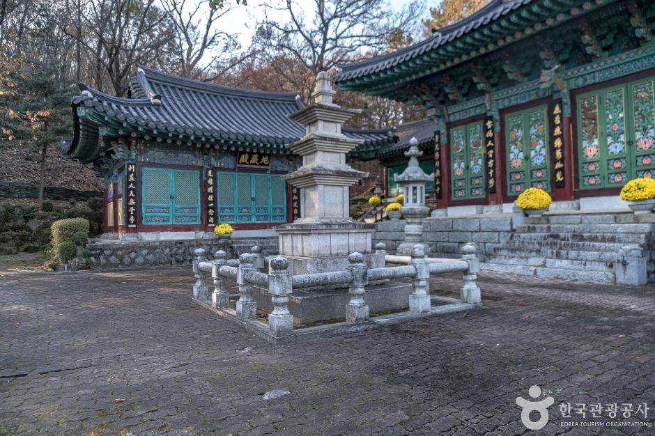 경내에는 일주문, 대웅전, 지장전, 범종각, 국사당, 삼성각 등이 있다. 1971년 건축해 1989년 중수한 대웅전은 정면 5칸, 측면 3칸 건물로 다포계 팔작지붕으로 되어 있으며 석가여래, 관음보살, 대세지보살이 봉안되어 있다. 대웅전 앞에는 석등, 삼층석탑, 약사여래 좌상이 있으며 뒤쪽 언덕으로 올라가면 9m에 이르는 미륵석불과 7층 석탑이 있다. 대웅전 옆 작은 석실에 명성황후와 연이 있는 미륵불이 봉안되어 있는데 오랜 세월 얼마나 많은 사람의 소원을 귀 기울여 들어주었는지 닳고 닳은 외형이 그 세월을 짐작하게 한다. 절 입구의 국사당에 2개의 탱화가 걸려있는데 좌측에는 산신이 우측에는 보통 호랑이가 있지만 말을 탄 선비의 그림이 걸려있는데 민치록이라 한다.