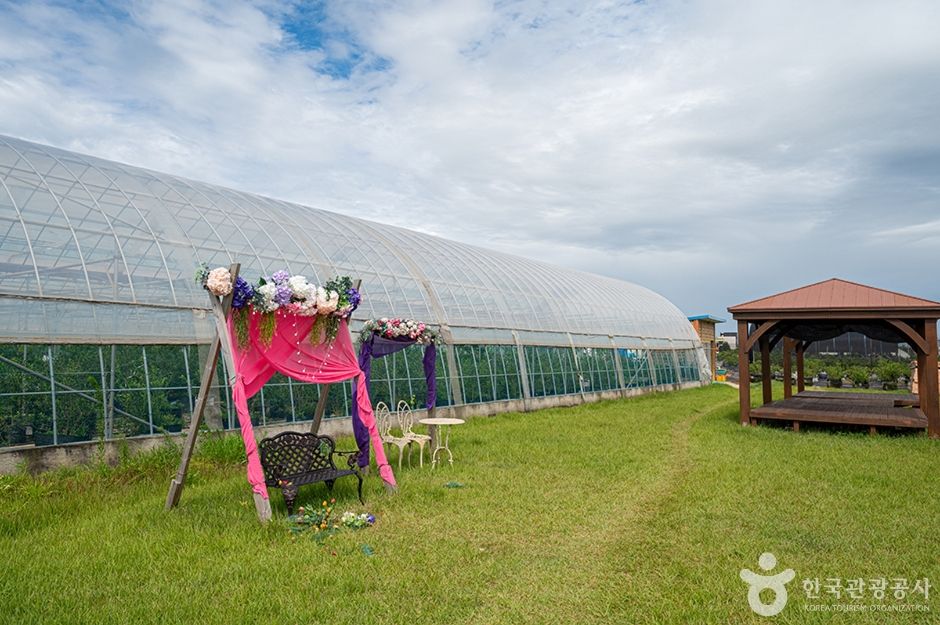 뜰안에 블루베리 농원은 블루베리 생과를 판매하고 수확 체험도 할 수 있는 약 6,000평 규모의 체험농장이다.