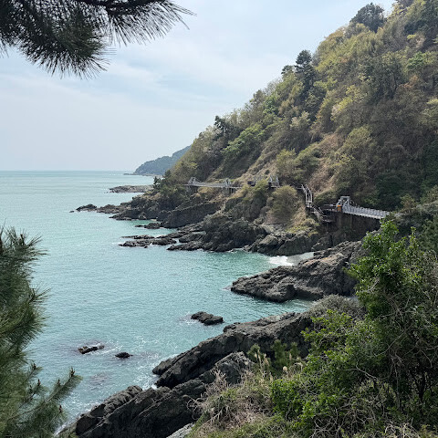 계단이 많고 경치가 매우 좋은 해안 산책로입니다. 맑은 날에는 일본 쓰시마섬이 보입니다.