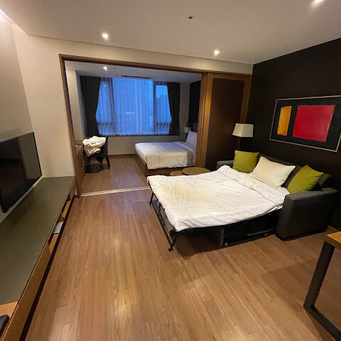 아주 좋은 위치. 명동과 남대문 시장까지 도보 거리. 시청역 근처. 카페, 미니마트, 레스토랑이 주변에 있습니다. KTX와 인기 있는 인근 쇼핑동까지 셔틀 서비스가 제공됩니다. 꼭대기층에 있는 온수 욕조와 수아나는 확실히 편안함을 극대화합니다. 개선해야 할 부분은 최고층 흡연 정원입니다. 좌석 벤치를 제공해주세요. 하루 일과를 마친 후 서서 담배를 피우기보다는 앉아서 휴식을 취하는 것이 좋을 것입니다 🙏🙏🙏. 서울에 있을 때 다시 프레이저와 함께 머물 다음 여행을 기대합니다