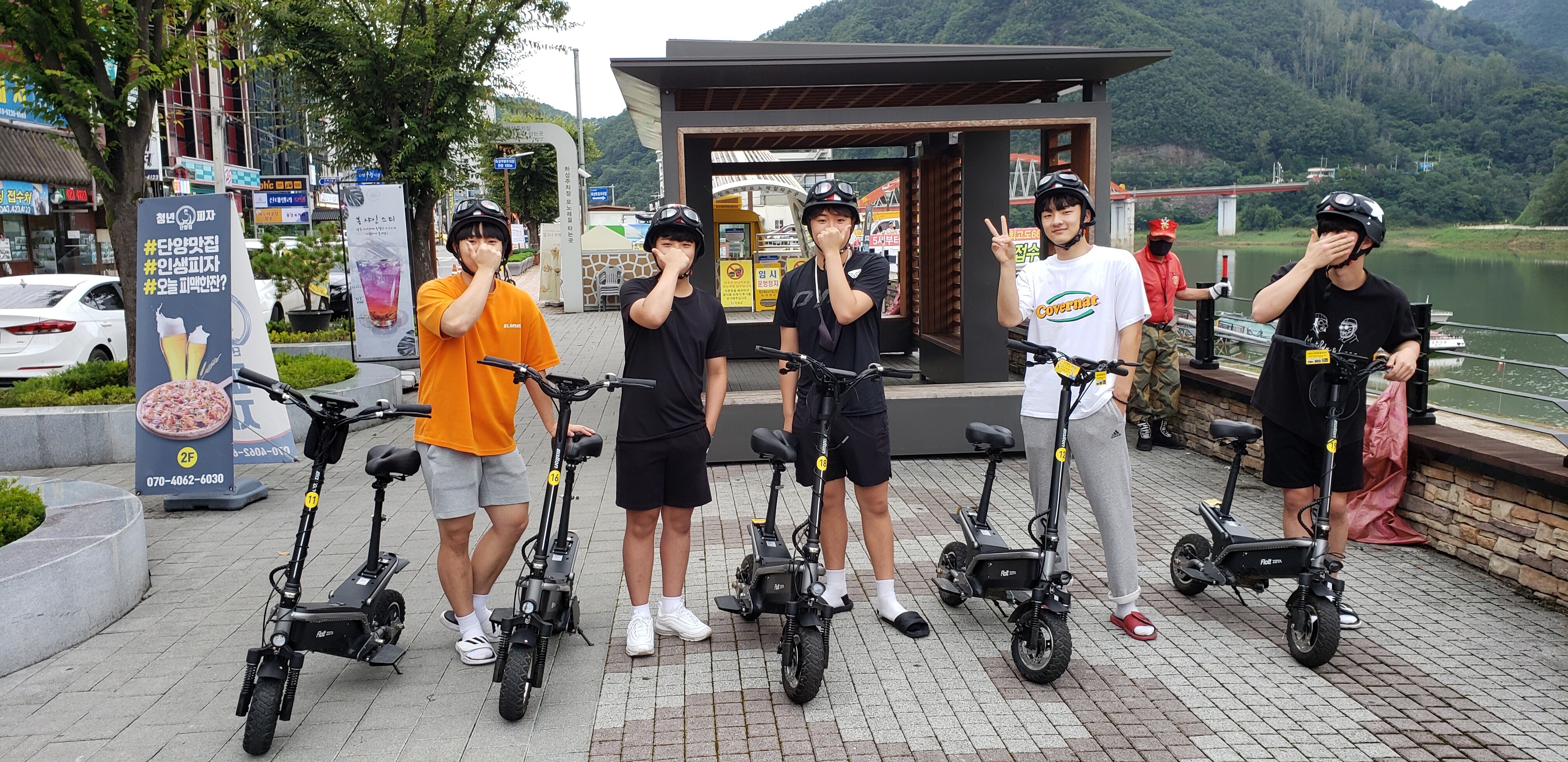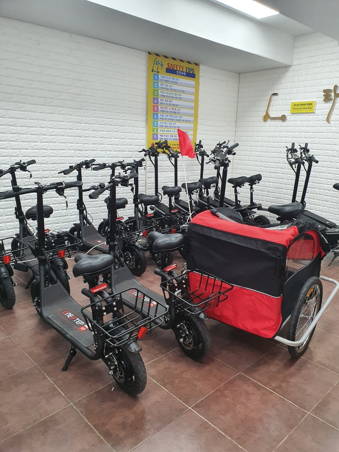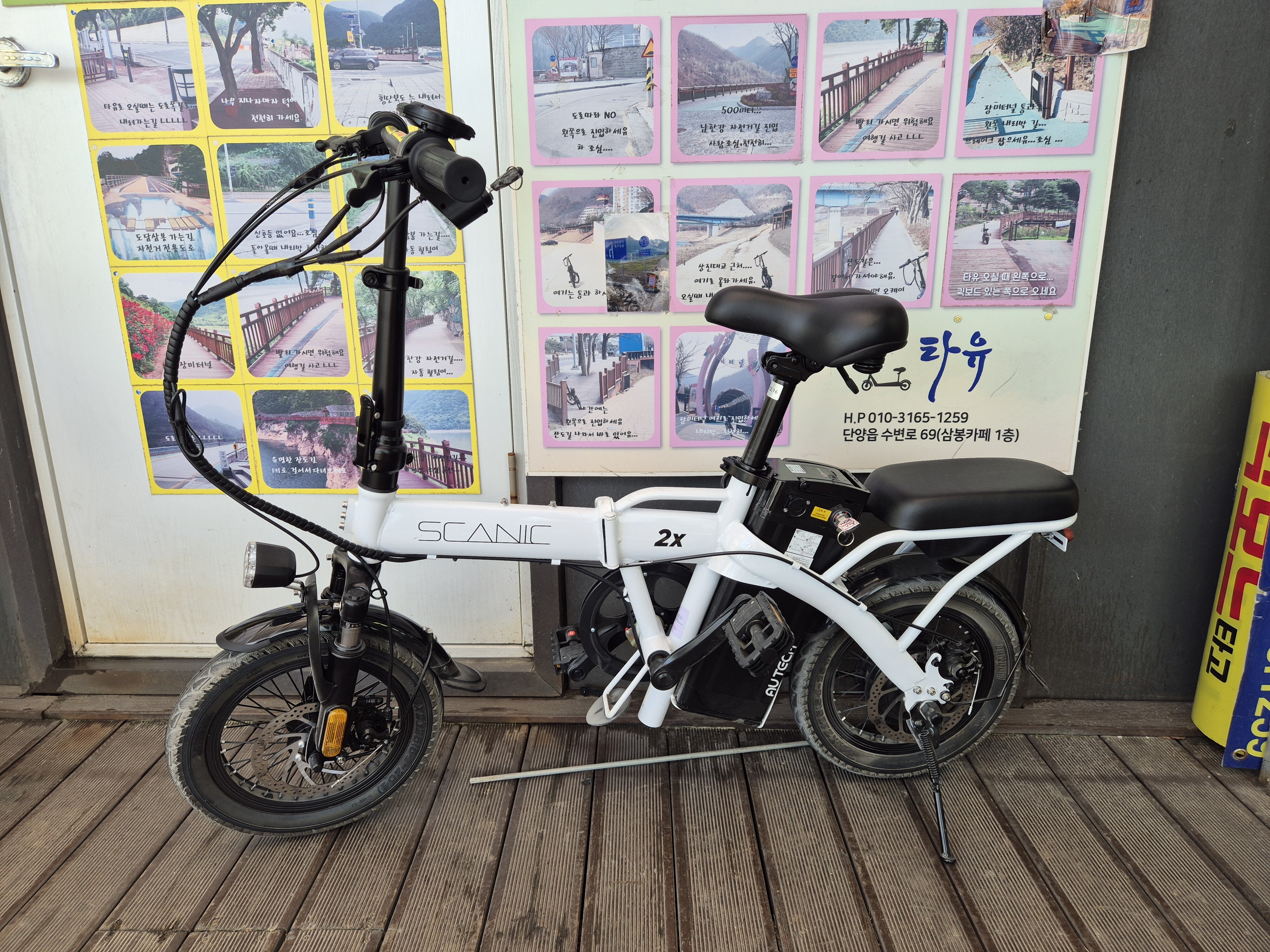 단양강 양백폭포 맞은편에 위치한 타유는 전기자전거, 전동킥보드 등 전동력 보드 퍼스널 모비리티 전문대여점이다. 하상 무료 주차장에 주차하고 첫 번째 계단으로 올라오면 단양레저 옆에 타유가 있다.