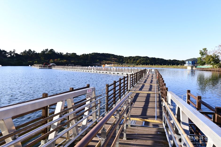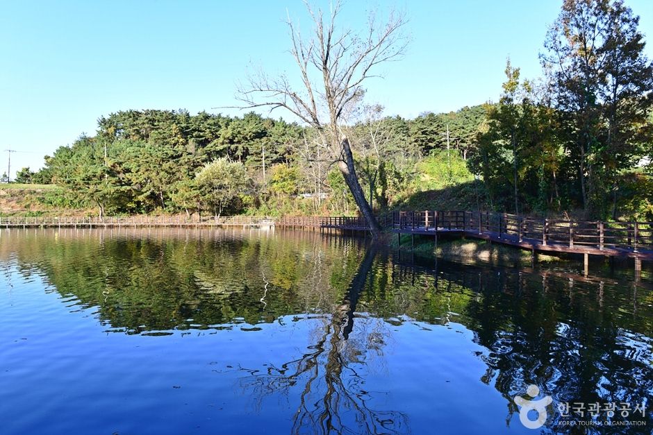 노동저수지는 수목원, 유아체험원, 관찰데크, 탐조테크, 숲체험원, 자연마당데크 등 다양한 공간으로 자연을 느낄 수 있으며 제19회 자연환경대상 공모전에서 대상인 환경부장관상을 수상하였다. 노동저수지 수상길은 저수지 물 위에 떠 있는 데크로 수위 변동에 따라 뜨거나 가라앉는 구조로 되어있어 시작점 도교는 수위가 낮을 때는 경사가 급해진다. 탐방길으 노동수상길 0.44km, 자연마당 0.3km, 전불길 3.6km로 중간에 부위분수, 조망다리, 휴게공간 등이 있어 아름다운 자연과 함께 힐링 산책을 즐길 수 있다. |