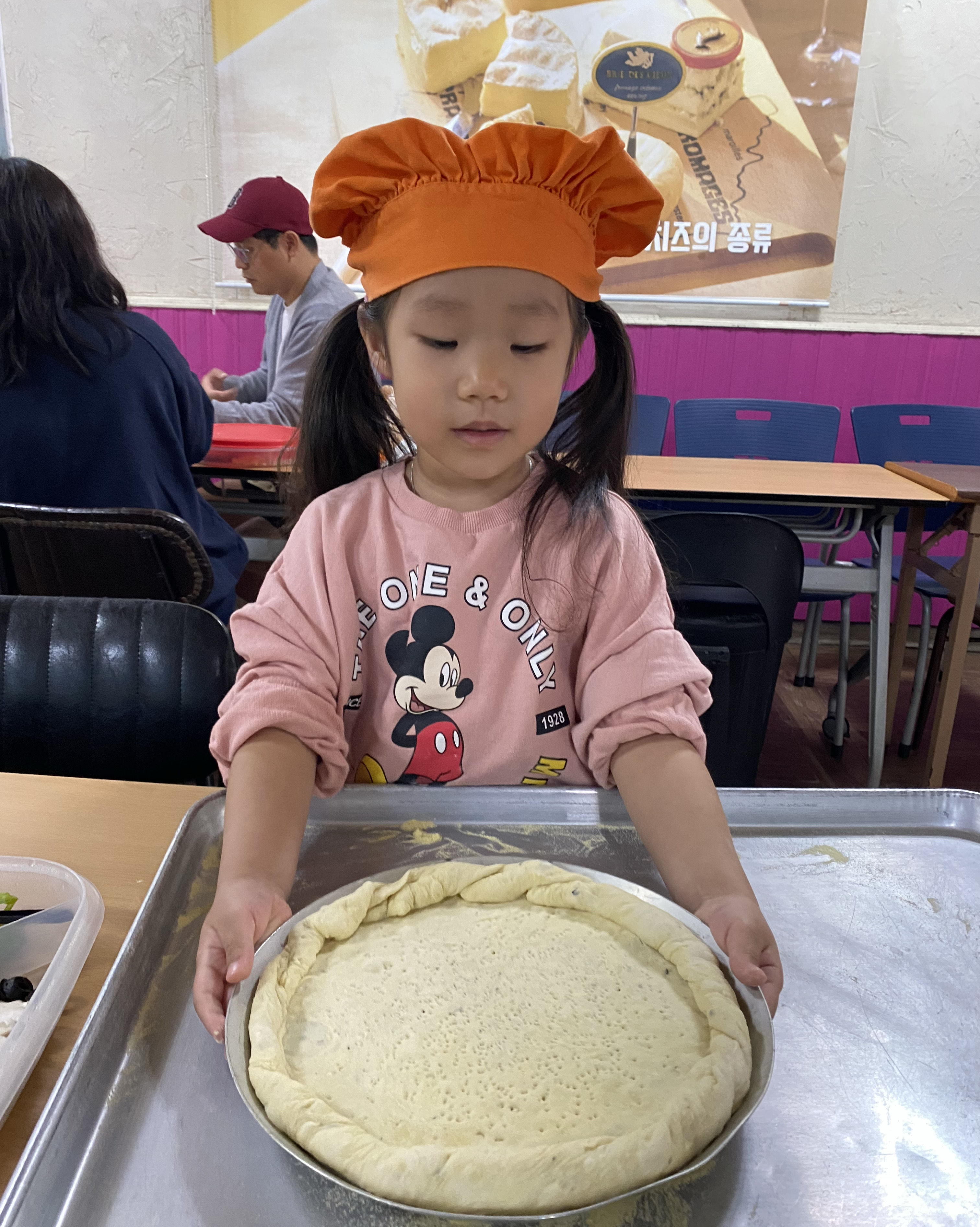 온라인으론 100/4로 저희만 예약되어 있었지만 방문지 단체팀들이 있었어요 치즈는 저희만하고 피자만들기 할때 단체 한 팀과 같이 했어요