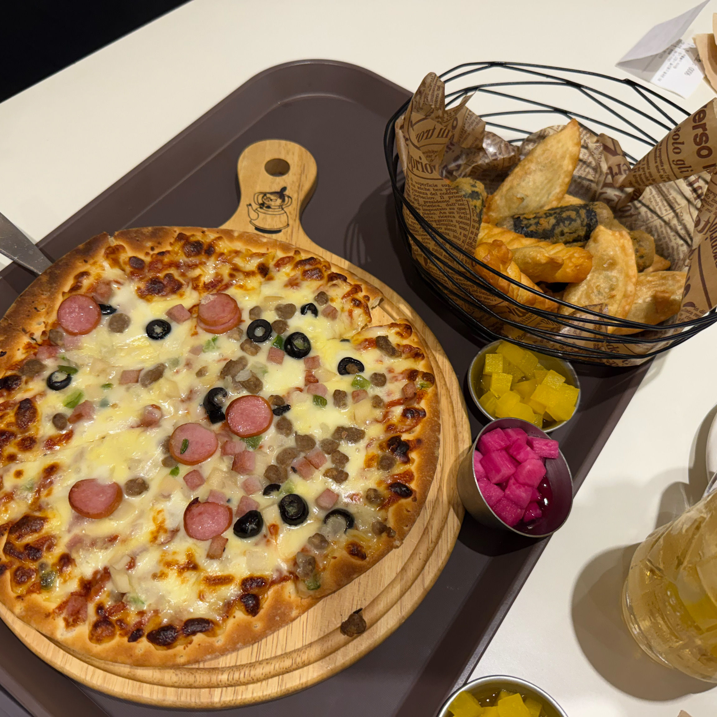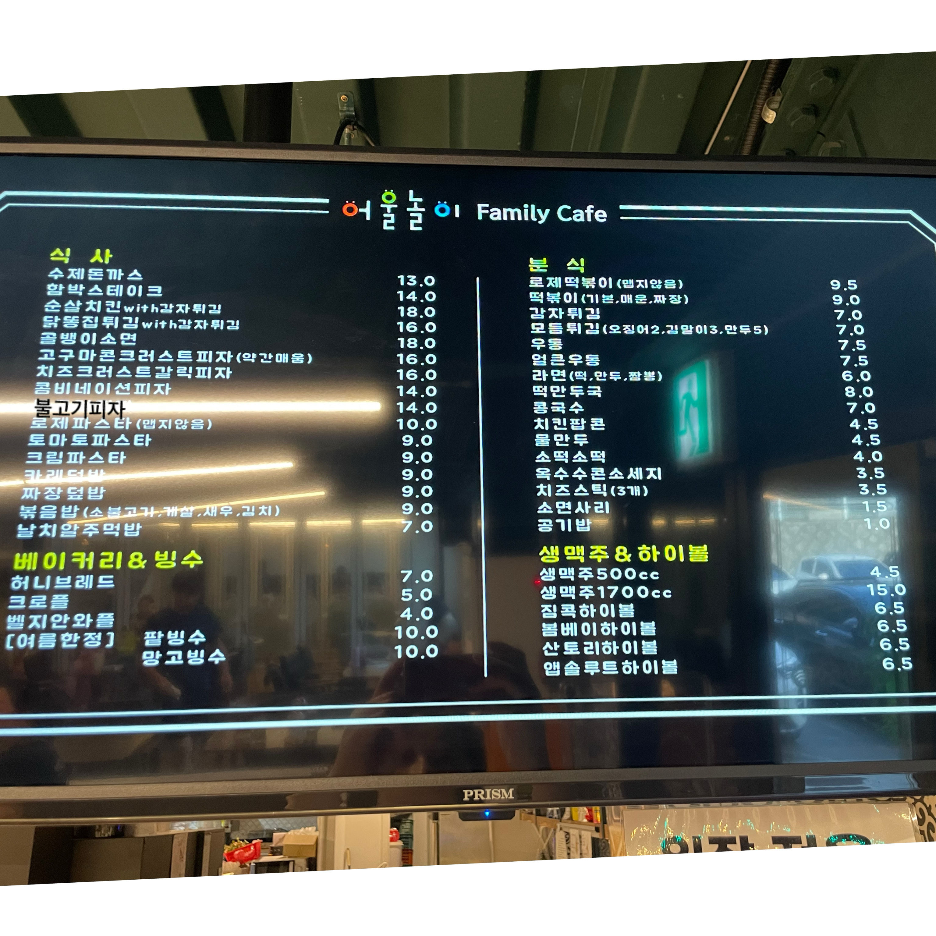 불고기피자, 치킨(감튀 포함) 다 맛있습니다! 놀거리 풍부하고 맥주도 팔고, 5천원 이상 식사나 분식류 주문 시 주말 및 휴일에 1시간 놀이시간 추가로 주고(평일은 2시간 추가) 너무 혜자네요 :) 기계식으로 타 주는 커피가 정말 맛없다는 것만 빼면 완벽합니다!