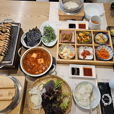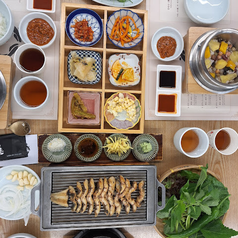 특선 메뉴인 소금에 절인 장어를 먹어봤는데, 맛은 좋았지만 장어에 작은 뼈가 좀 있었어요. 직접 재배한 채소가 식사에 신선함을 더해준다는 점이 마음에 들었습니다. 장어와 생소고기 세트(2인용, 89,000원)도 주문했는데, 생소고기가 부드럽고 맛있었습니다. 사이드 메뉴도 전반적으로 괜찮았습니다. 전반적으로 만족스러운 식사였습니다.