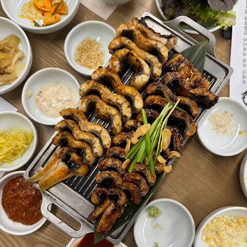 풍천만민물장어는 부산 X the SKY에서 도보 5분 거리에 있는 해운대에 위치해 있습니다. 예약 가능합니다! 민물장어는 1인당 50,000원이며, 신선한 야채, 양배추, 기타 밑반찬이 무료로 제공되어 무엇을 싸서 드셔도 맛있습니다!!! 장어는 주문 즉시 잡아 구워 신선도와 풍미를 보장합니다. 셰프가 바로 앞에서 구워주며, 완성된 장어는 그때그때 제공됩니다. 다른 재료들과 잘 어울리는 오리지널 맛(소스 구이가 아닌) 장어를 추천합니다. 장어 마니아라면 꼭 예약하고 방문하세요!! (2025년 11월 방문)