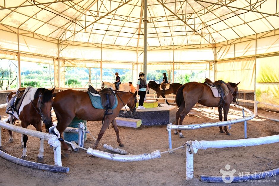 광주 도심에서 접근성 좋은 어등산승마클럽은 바로 옆으로 논밭, 멀리는 어등산이 배경으로 보이는 곳에 자리잡고 있어 자연 속에서 말과 함께 달리는 듯한 승마체험을 할 수 있는 승마장이다. 규모 면에서도 작은 편이 아니어서 승마장에 보유한 말이 33필이나 된다. 기승 시에 길잡이 역할을 하는 코치와 코치의 지시에 따라 말을 컨트롤 하는 리더, 강습 시 기승자의 옆에 위치해 안전을 책임지는 사이드워커의 승마도우미들이 체험을 보조하여 안전하게 승마 체험을 할 수 있다.