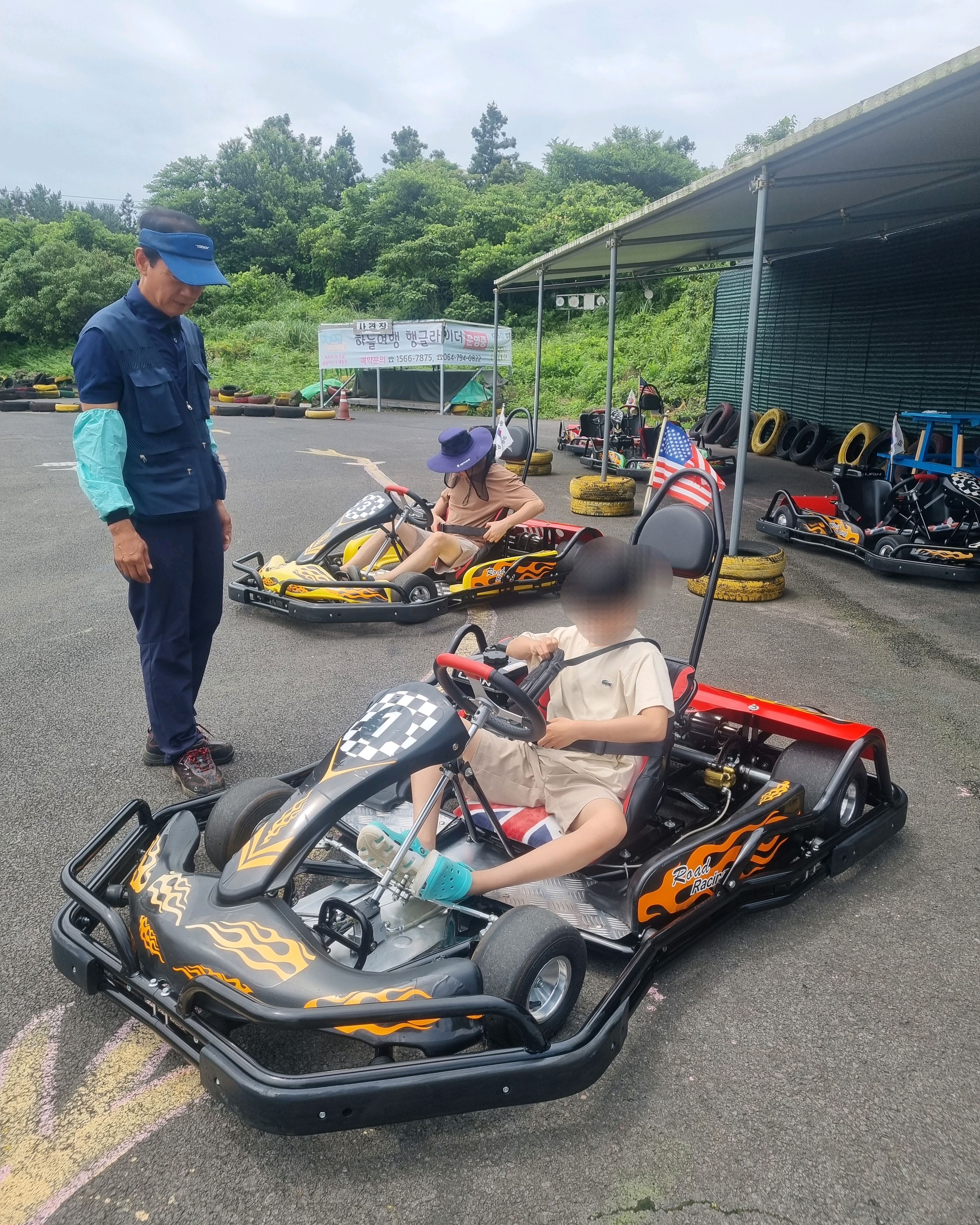 9×× 가서 카트체험 해보고 아쉬워서 급하게 찾아서 다녀왔는데요 저희집 어린이는 거기보다 여기가 훨씬더 재밌고 스릴넘쳤다고 했어요^^ 사장님 내외분이 진짜 친절하시고 예의바르시고 다정하게 맞아주셨어요.제주에서 좋은추억 남기고 가게 도와주셨어요. 다음에또 여행오면 또 들릴꺼에요^^그리고 바로옆에 하늘자전거랑 헹글라이더체험장이 있는데요 진짜 너무 재밋었어요 간김에꼭 함께하고 오세요^^