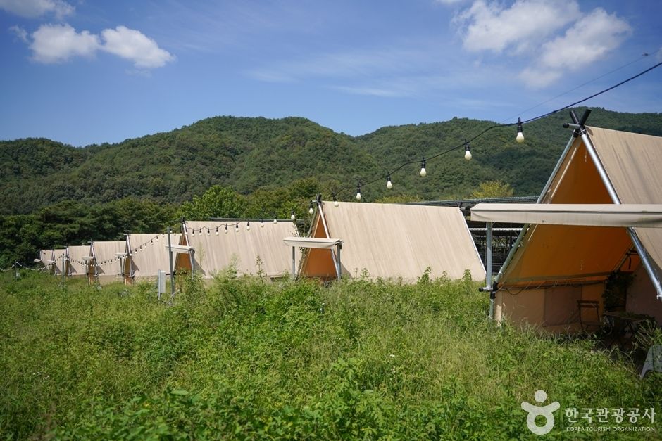 하늘목장은 18만 평의 대형 목장에 텐트와 카페. 체험학습장을 운영하는 곳으로 시골에서 머물면서 먹고 보고 놀고 즐길 수 있는 ‘캠프닉’ 전문 농장이다. '캠프닉'이란 캠핑과 피크닉을 합친 말로 소풍 가듯 가볍게 가서 캠핑처럼 음식을 해먹으며 휴식을 취하는 당일코스로 현장에서 바비큐용품과 식재료를 구입할 수 있고 미리 준비해 간 음식으로 캠핑을 즐길수 있다. 시설로는 풀장이 있는 독립 텐트와 평상, 넓은 운동장과 모래 놀이터, 카페가 있고, 체험 행사로는 토마토. 고추 등 농산물 먹거리 성장 과정을 알 수 있도록 어린이 농촌체험과 피자 만들기 체험, 동물 먹이주기 체험 등이 있다. 별도로 계절별 기획 프로그램 운영을 하며 포레스트 걷기대회, 플리마켓 등 다양한 행사로 볼거리와 먹거리를 제공하니 홈페이지 정보를 확인하고 방문하자.