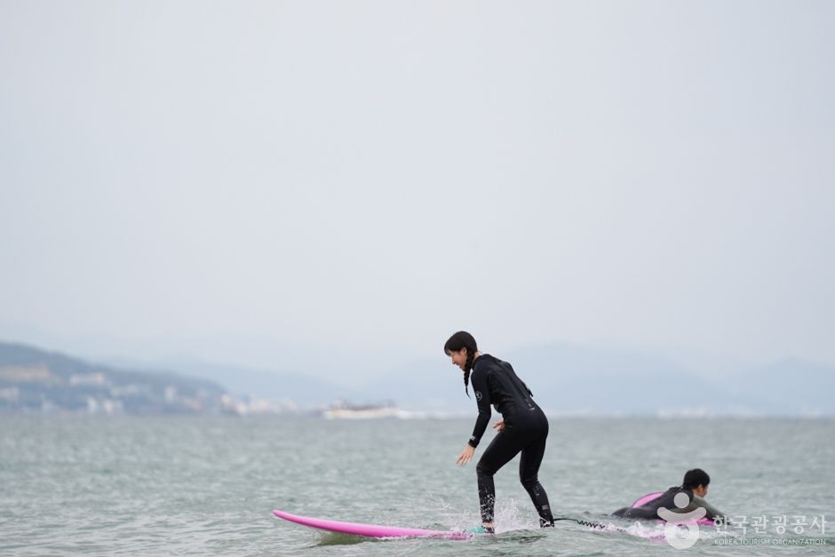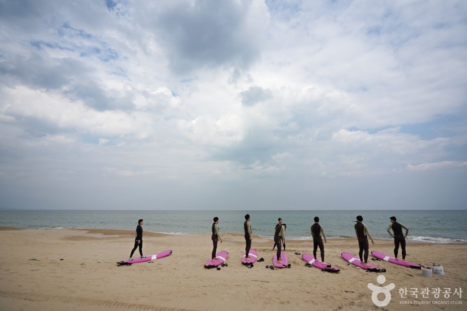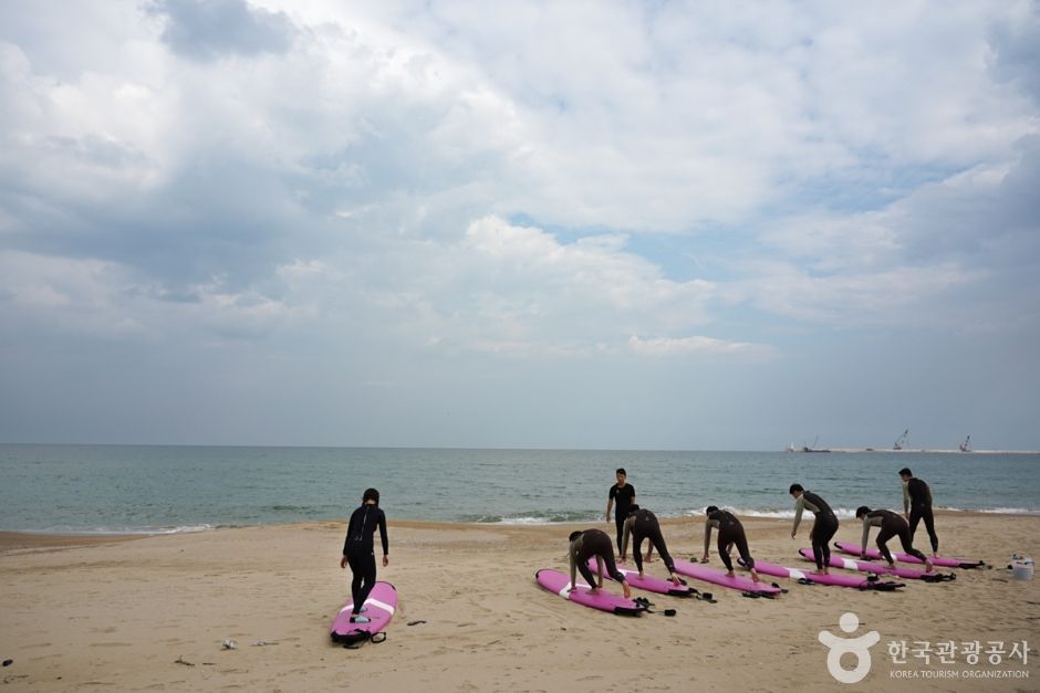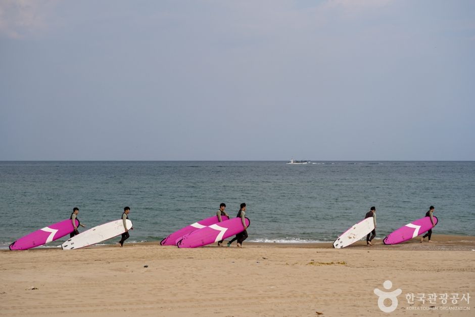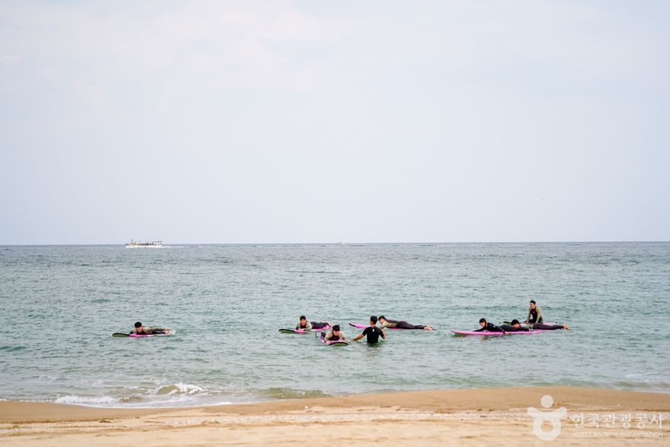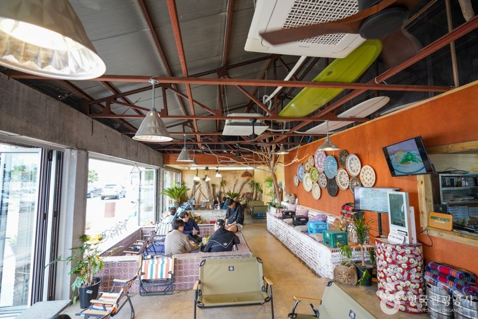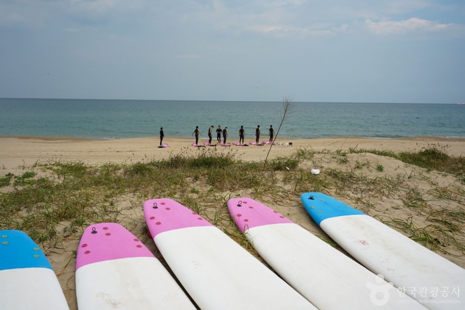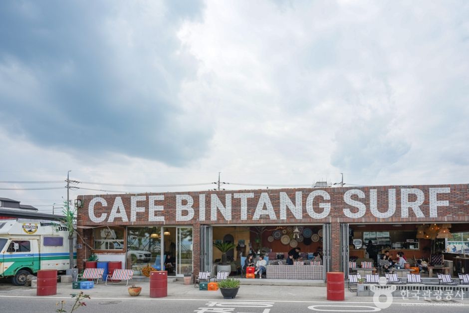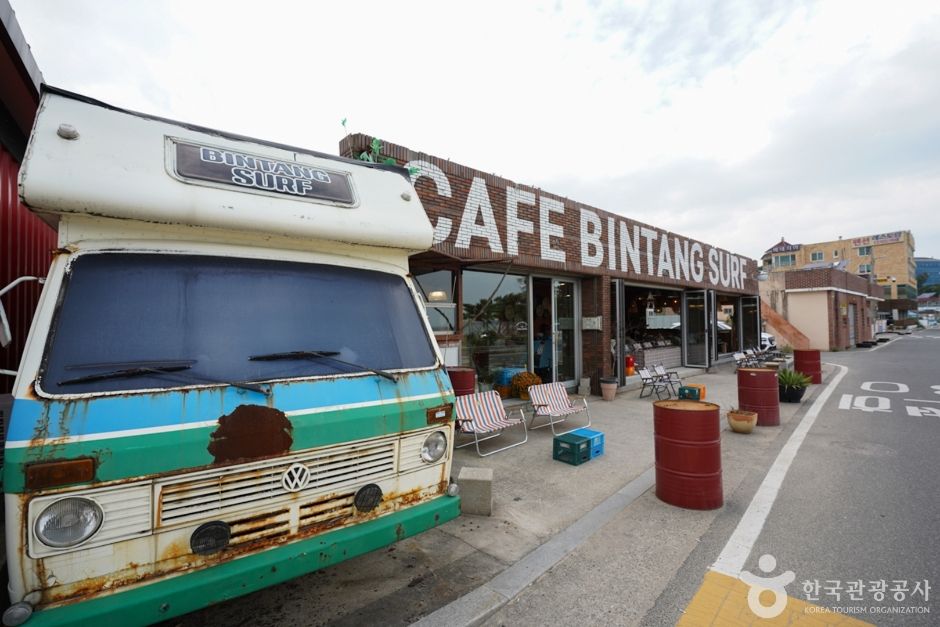 이곳에 위치한 ‘빈땅서핑’은 서퍼숍과 카페, 숙박을 함께 운영하는 곳이다. 아내가 운영하는 이국적인 인테리어 카페는 발리에 온 듯한 착각이 들 정도로 부부가 직접 발리에서 사온 소품과 태풍에 떠내려 온 나무들을 이용해 옛 수산물 창고를 꾸몄다. 서핑 전, 후 바다를 바라보며 간단한 커피와 브런치(쉬림프 아보카도 베이글, 스파이시 치킨 파니니, 불고기 모짜 그릴샌드)를 즐길 수 있고 대한민국 1세대 서퍼인 남편은 서핑샵을 운영하며 직접 강습을 책임지고 있다. 강습은 개인, 소수, 단체 등 다양하며 미리 예약을 해야 한다. 무엇보다 석양이 아름다운 이곳에서 진행되는 선셋강습은 여성에게 인기가 있다.