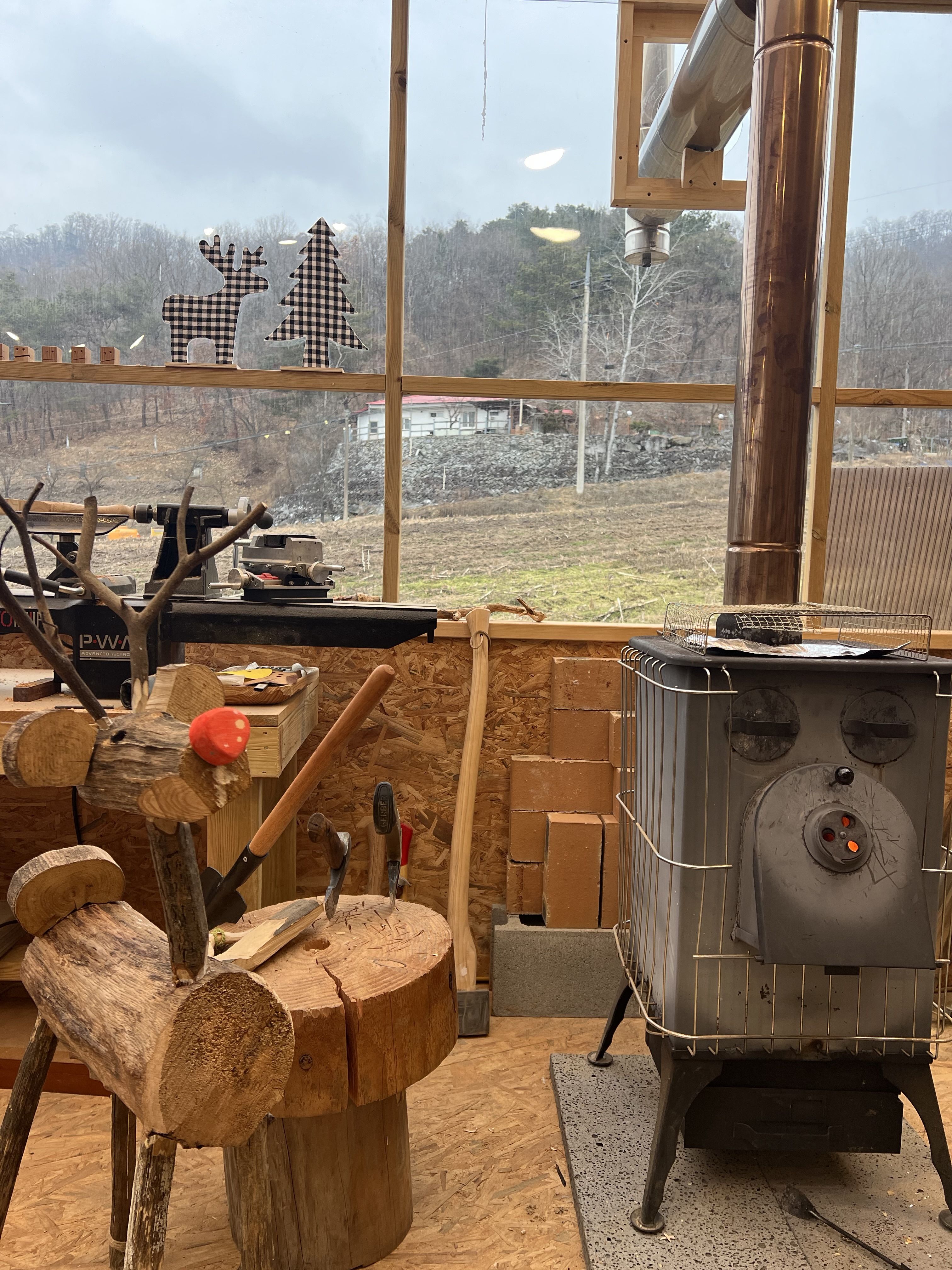 주변이 숲속으로 둘러쌓여 있는 멋진 공방