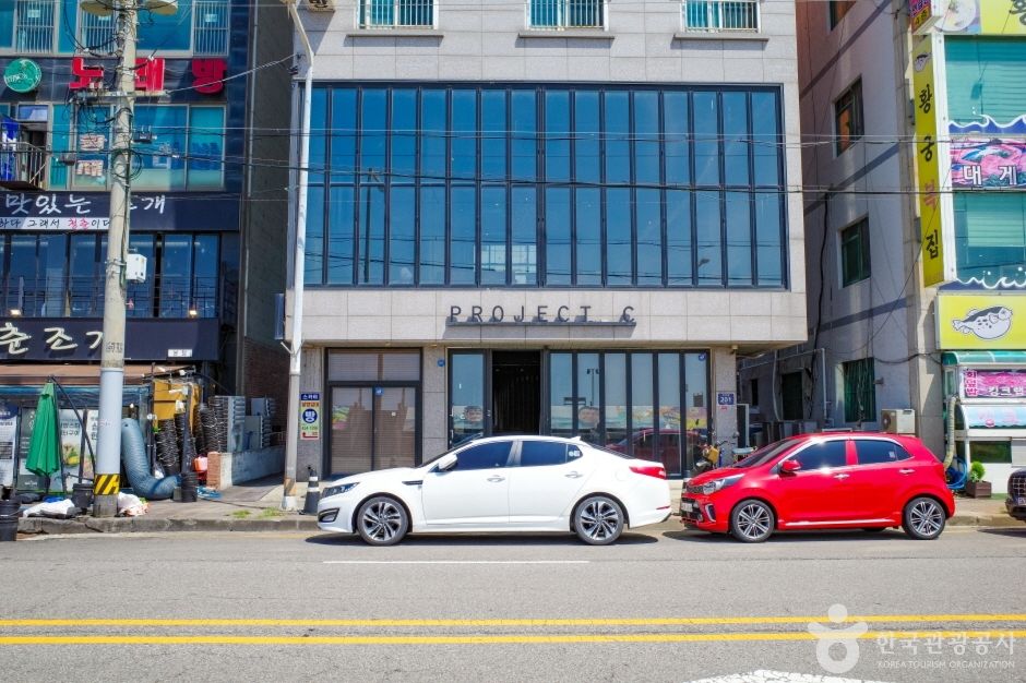 시흥 오이도 바다뷰가 아름다운 프로젝트씨 카페는 [힐링 플레이스]라는 타이틀에 걸맞게 방문하는 모든 손님이 서해 노을 지는 바다를 보며 힐링할 수 있도록 최선을 다하는 카페이다. 1층에서는 카페에서 직접 제작한 백팩, 미니백, 크로스백 파우치 등 캐주얼한 가방들이 전시 판매되고 있다. 카페는 2층에 있으며 높은 층고와 통창으로 개방감이 있고, 우드 디자인으로 따뜻한 느낌을 준다. 주문은 키오스크로 하며, 키오스크 옆에도 1층에서 판매되는 제품들이 전시되어 있어 구매할 수 있다.