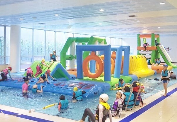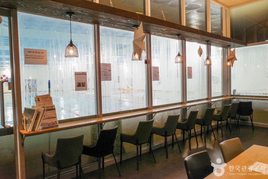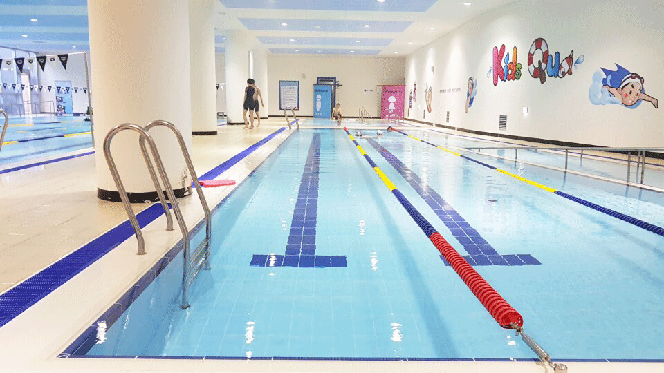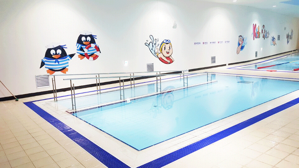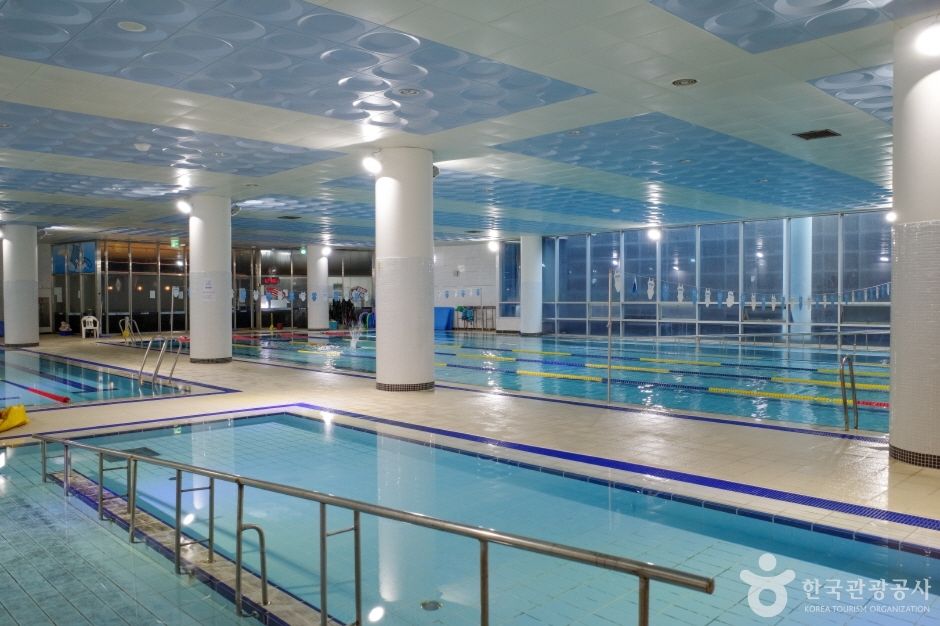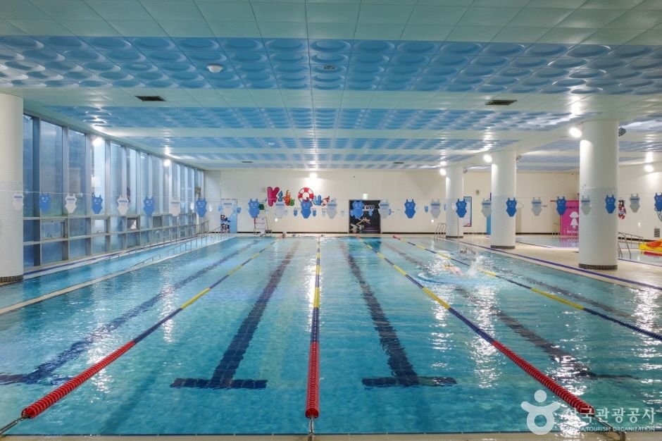 레인은 25m 5개, 수심이 낮은 20m 레인 2개, 유아풀로 이루어져 있으며 오리발과 킥 판, 풀부이 사용도 가능하다. 탈의실에는 드라이기와 빗 수건까지 비치되어 무료로 사용할 수 있으며 시에서 운영하는 수영장과는 다르게 강습생을 많이 받지 않아 한적하게 수영을 즐기기 좋다.