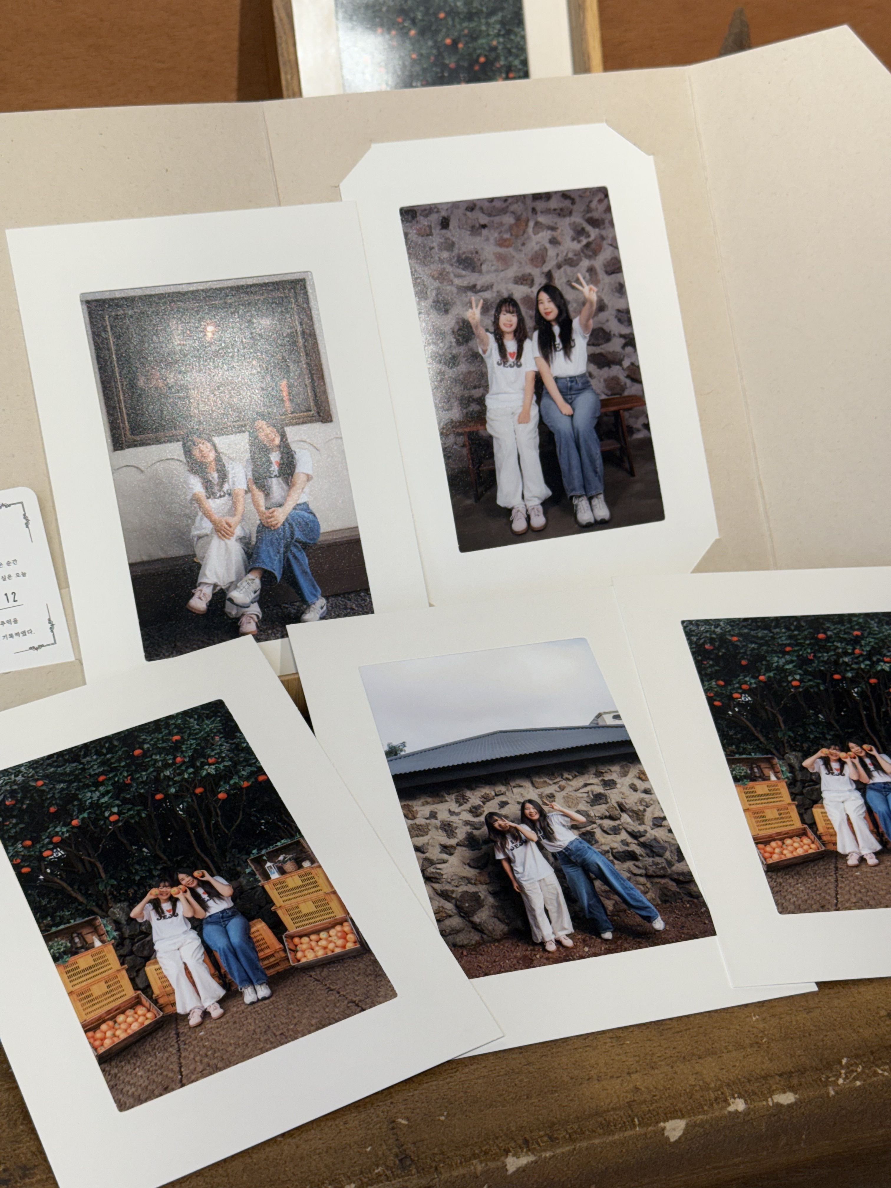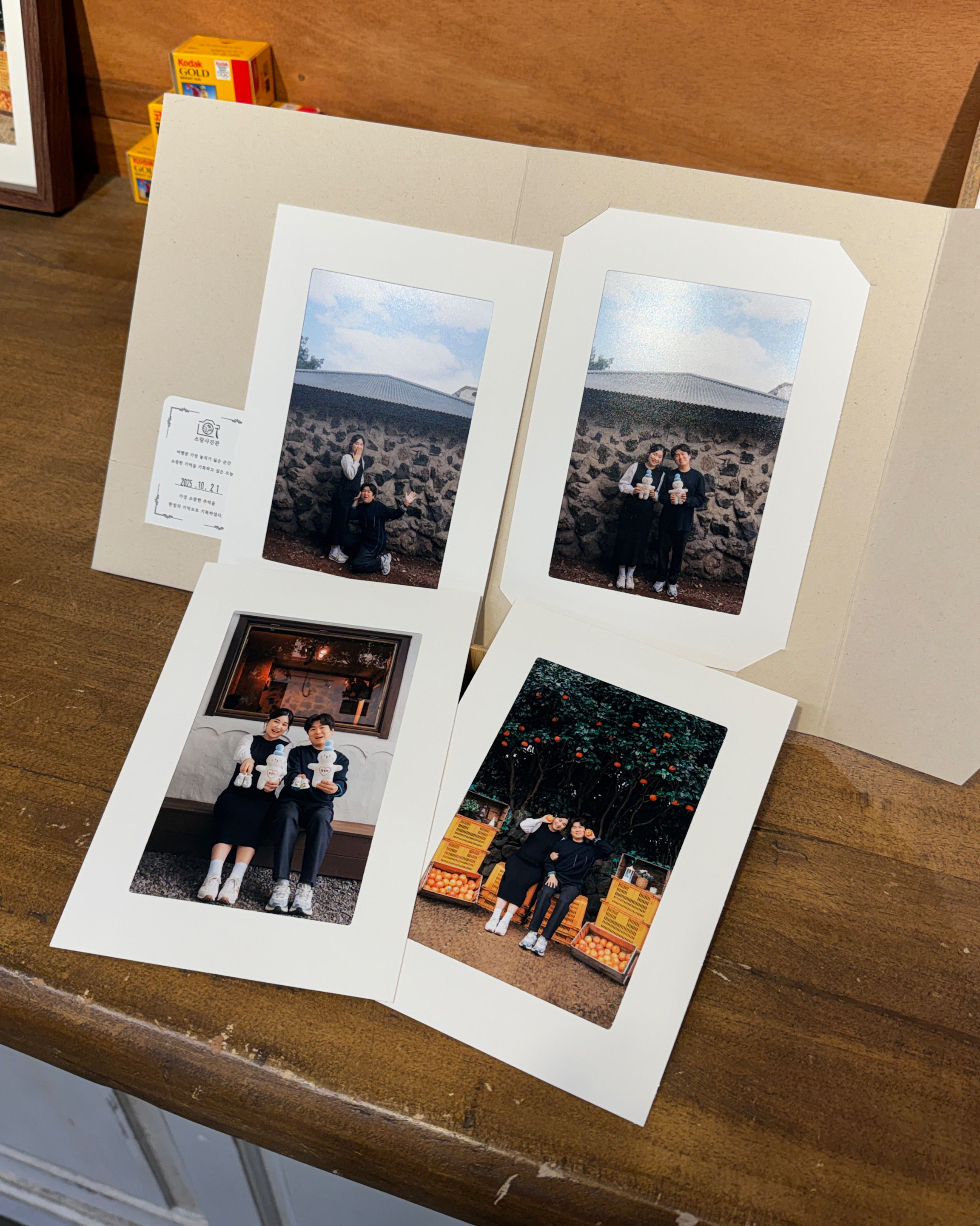 촬영은 4곳의 스팟에서 10분 정도 이루어지고(⭐️빠르게 진행되니 본인이 머리 잘 정리하기), 사진 선택 5-10분, 보정 및 인화 10분 정도 이루어집니당!