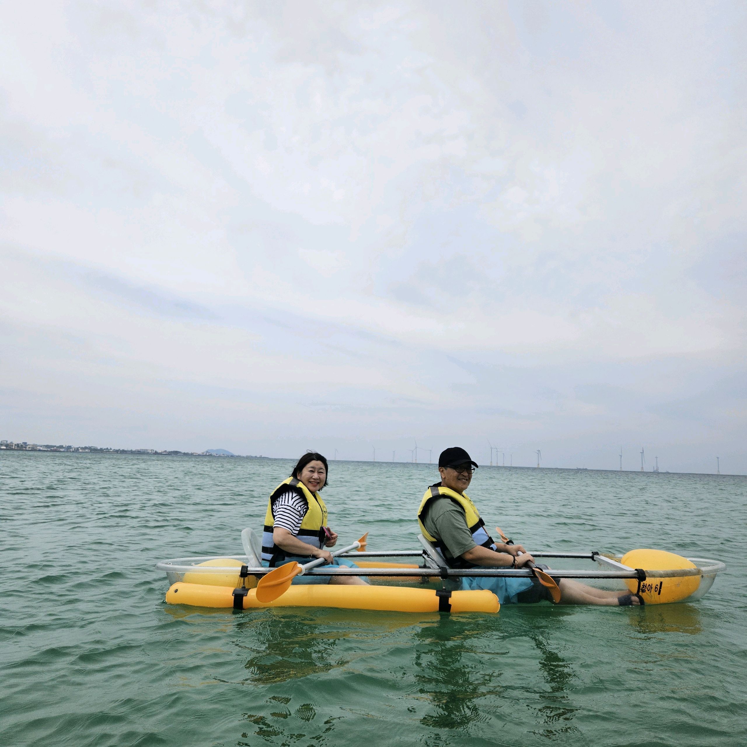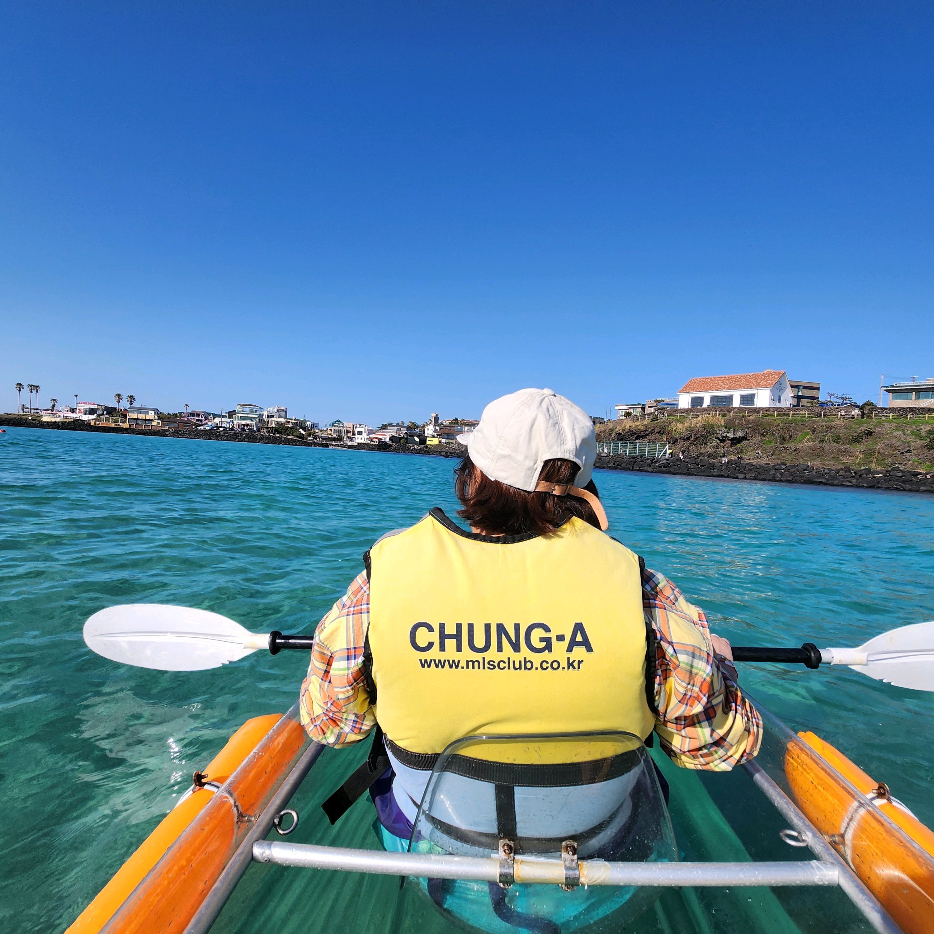 제주도 여행간김에 특별한 걸 해보고 싶어서 애월투명카약을 탔어요!! ㅎㅎ근데 날씨가 생각보다 더워서 힘들긴햇어요 ㅎㅎㅎ그래도 특별한 체험할 수 있어서 좋았습니다 이쁜 바다에서 둘이서 카약 ㅎㅎㅎ좋아요! 한번쯤 해볼만한 경험입니다 사장님사모님은 너무 친절하시고 좋았습니다.