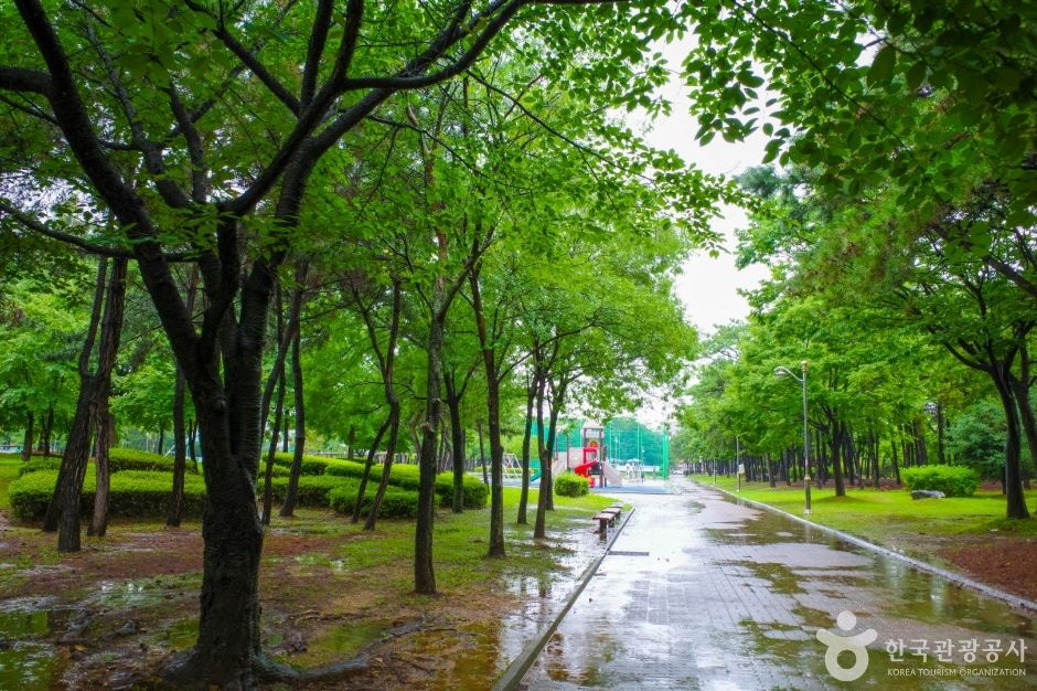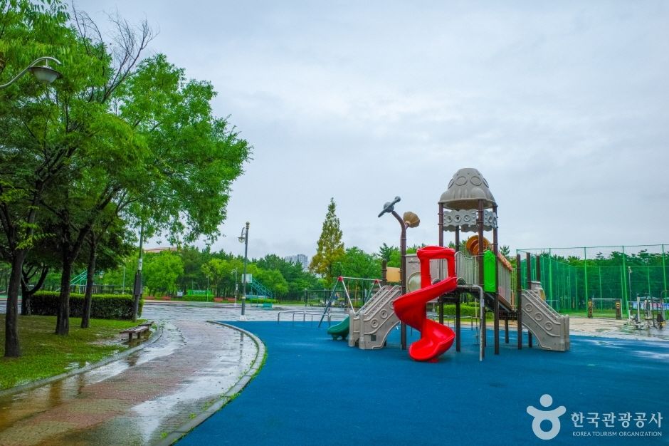 공원 관리소와 화장실 건물을 지나면 관리가 잘되어 있는 지압 보도가 나오며, 소공연과 마을 행사를 할 수 있는 공연장이 갖추어져 있어 다양한 마을 축제나 공연 관람이 가능하다. 이밖에 농구대와 풋살장, 다양한 운동기구들, 어린이 놀이터 등의 시설을 갖추고 있으며, 하절기에 운영되는 바닥분수는 더위를 식혀주는 아이들의 즐거운 놀이터가 된다. |