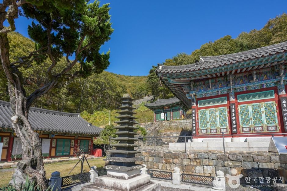 신라 49대 헌강왕 4년(878년) 도선국사가 창건하였으며, 선조 36년(1603년) 계형대사가 중건하고 불법을 계승하여 오다가 1946년 청담대사가 수도장의 조건을 구비하고 시설을 개수, 1962년 청곡사 암자에서 해인사 말사로 등록하였고, 1963년 청웅스님이 대웅전을, 1970년 법령스님이 요사체 보수, 1973년 성범 스님이 진입로 1.5㎞를 포장하여 오늘에 이르고 있다. 절 주위에는 울창한 숲과 차 나무가 자생하고 있으며, 절부터 아랫마을까지 산림욕장이 조성되어 있다. 두방사 뒤쪽을 보면 빽빽한 활엽수림이 있는 월아산이 마치 절을 품고 있는 형상을 하고 있고, 대웅전 앞마당에는 신라시대에 조성된 다층석탑을 볼 수 있다.